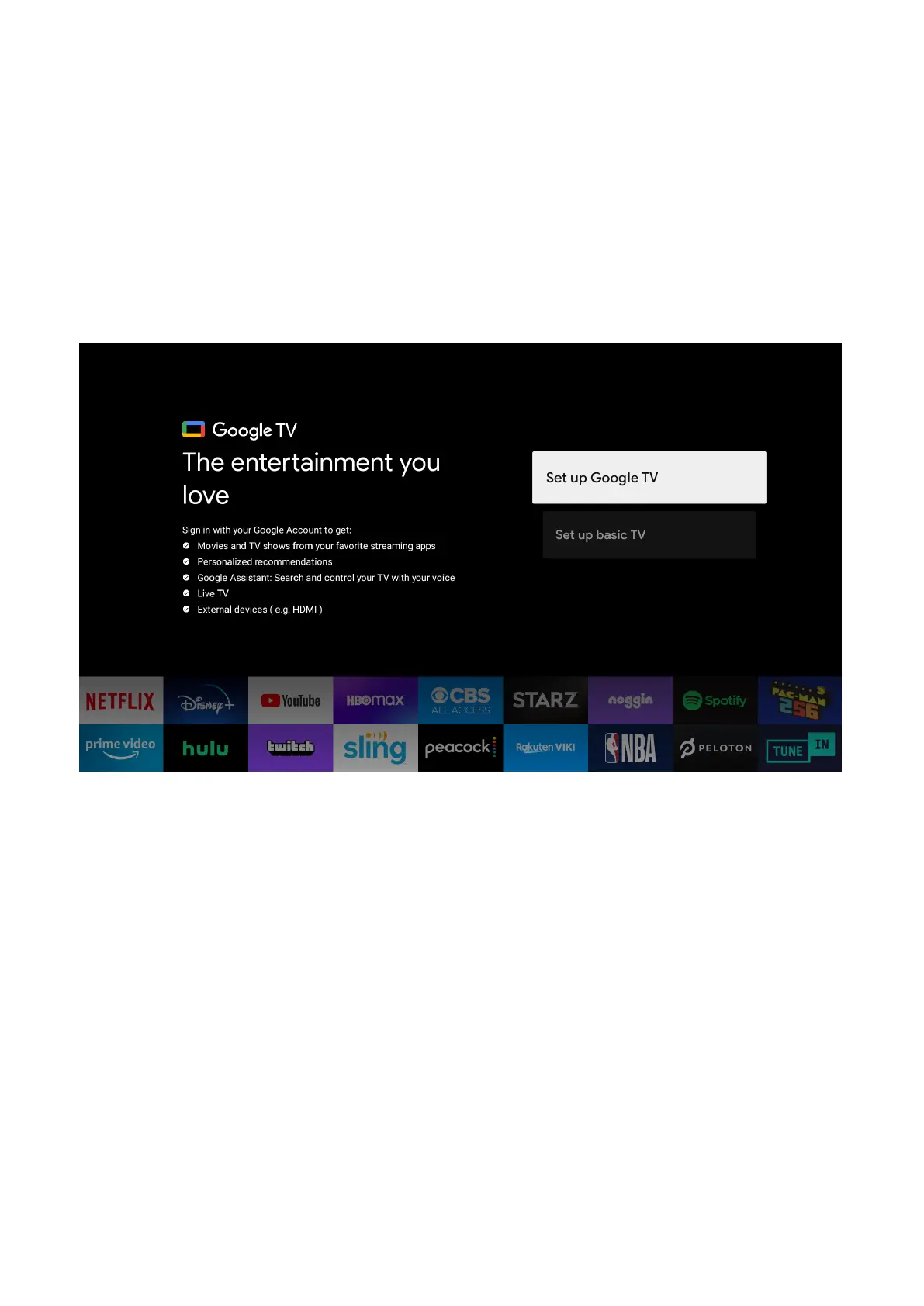 If you select “SET UP GOOGLE TV” please follow the below instructions below: