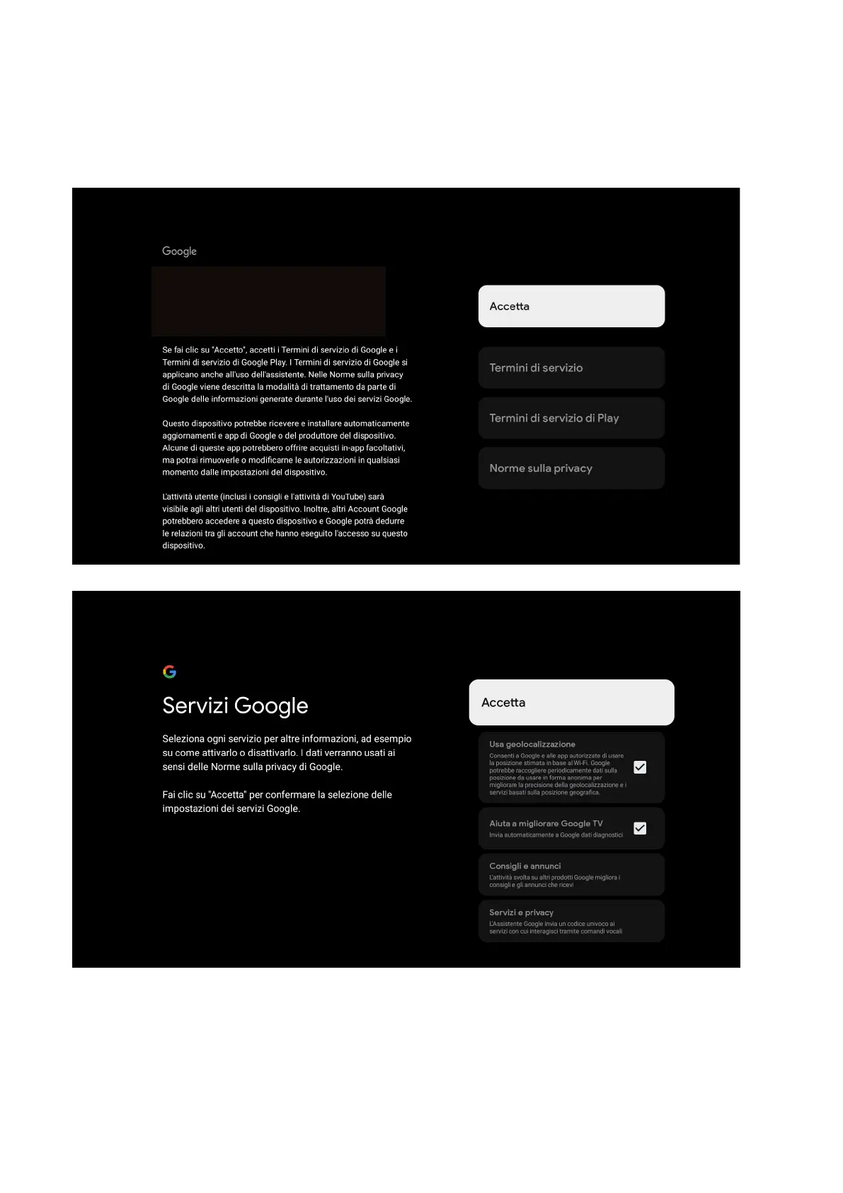 Accettando i Termini di servizio di Google per migliorare l’esperienza del prodotto, selezionare