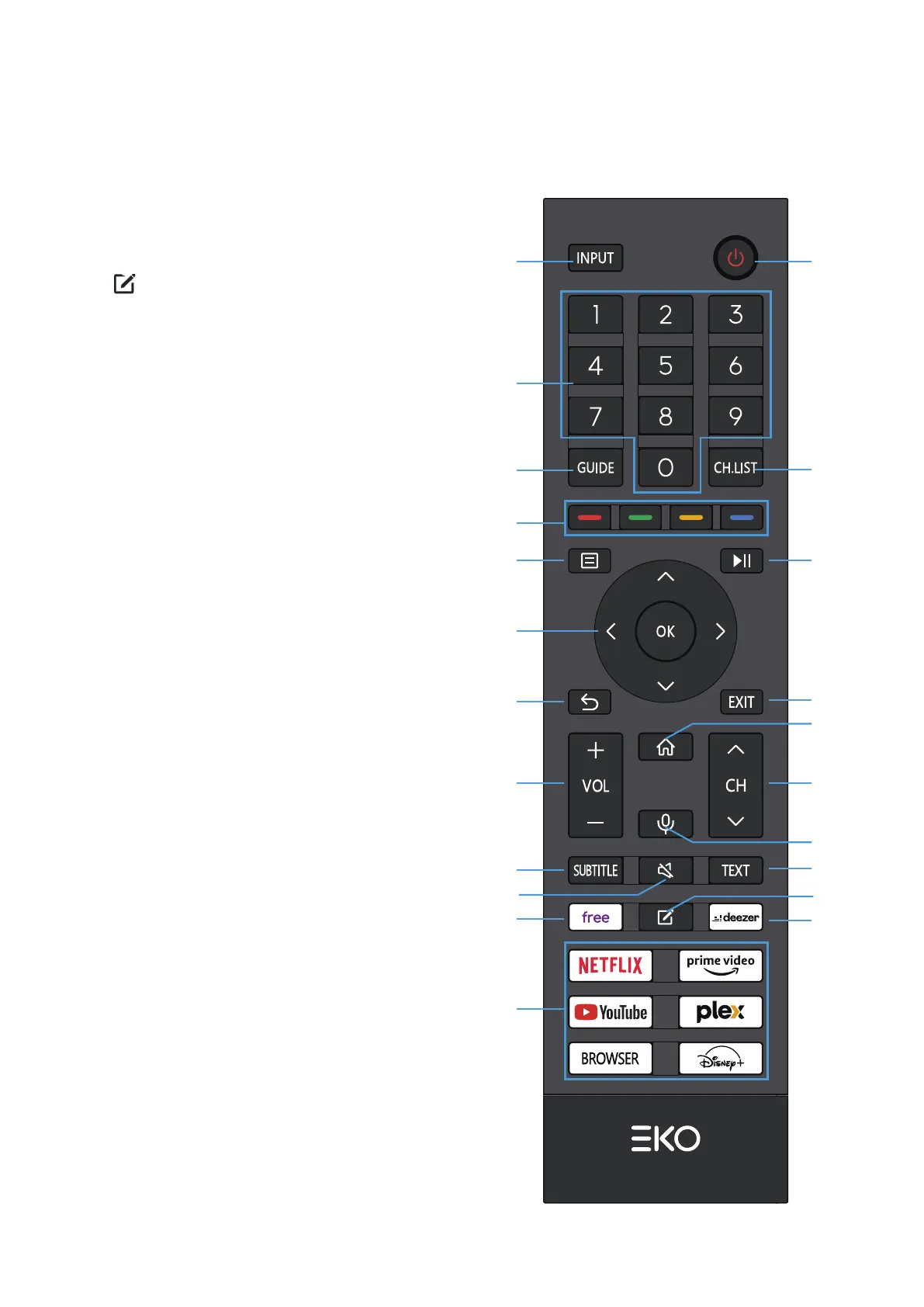18. TEXT: Activer / désactiver Teletext.