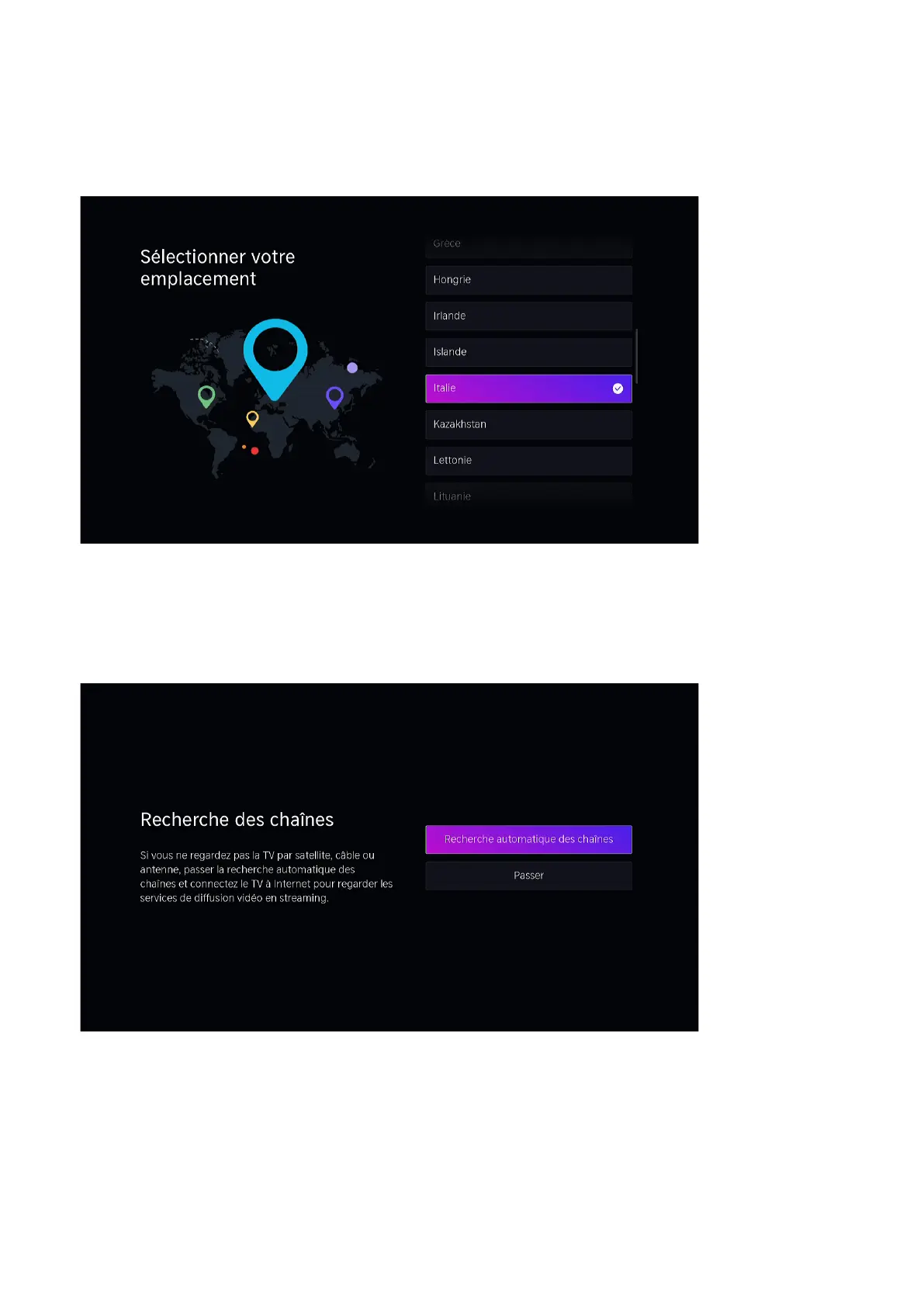 Appuyez sur pour sélectionner un scan de canal ou sautez pour continuer les réglages du