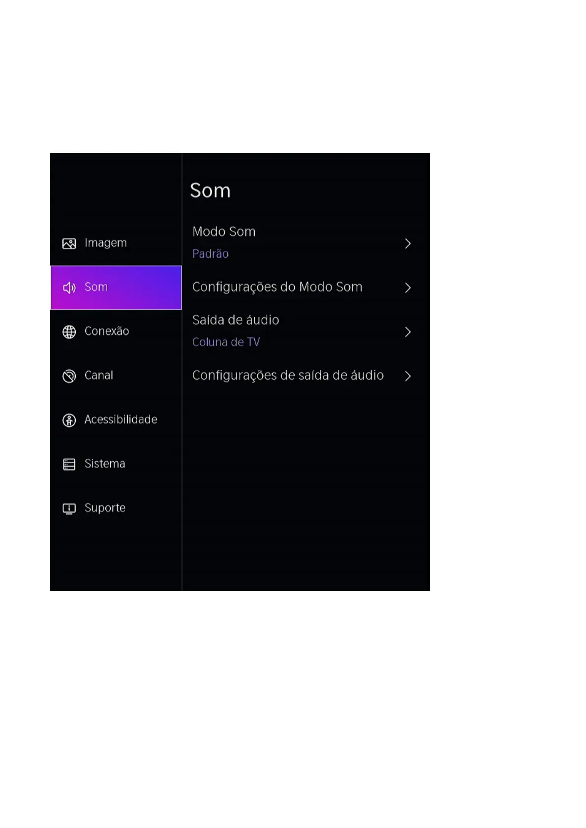 Para acessar o menu Som, selecione o menu Configuração (#6 na página 30) e vá para baixo e