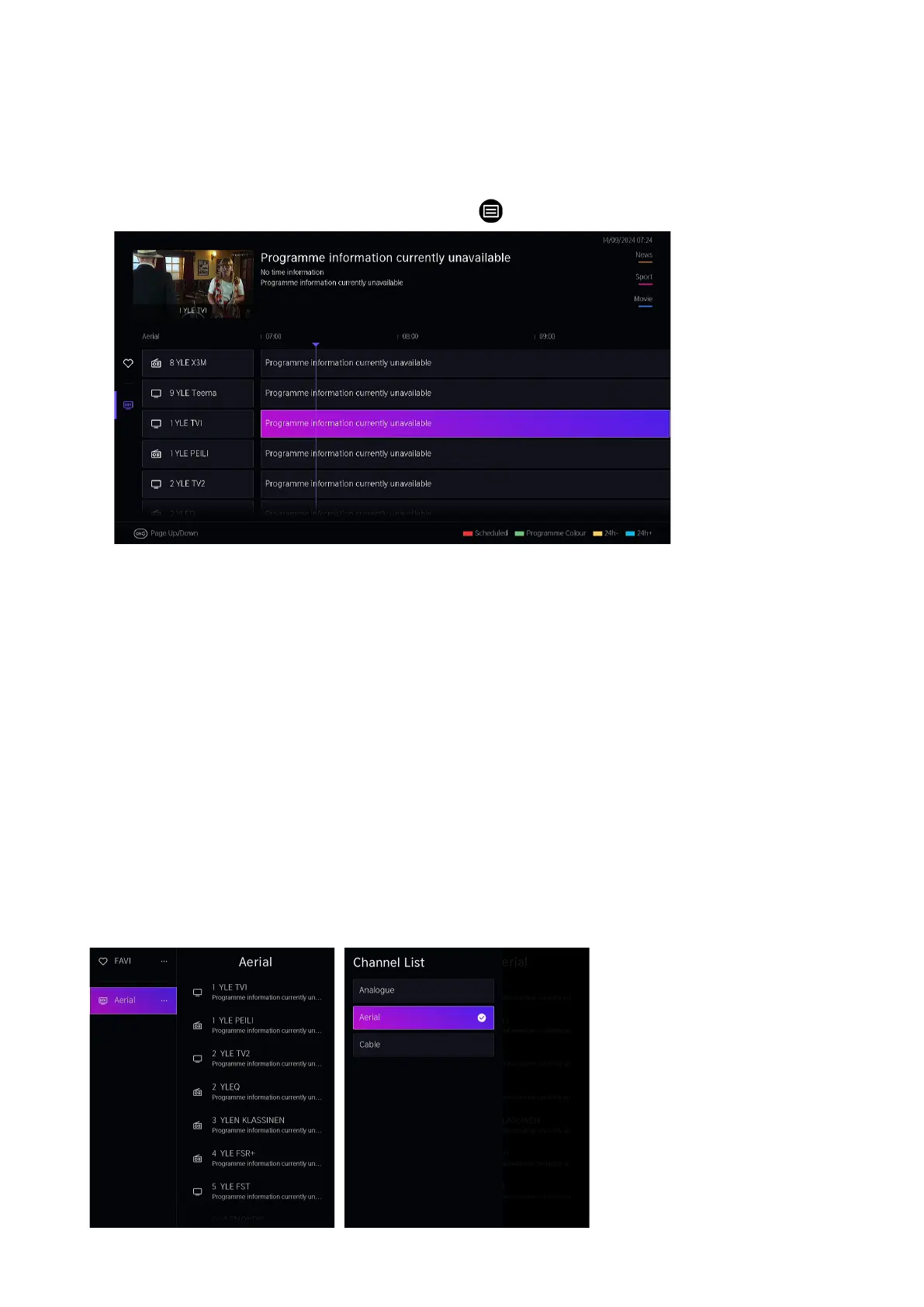 channel categories, such as Analogue, Cable, Satellite or Aerial.