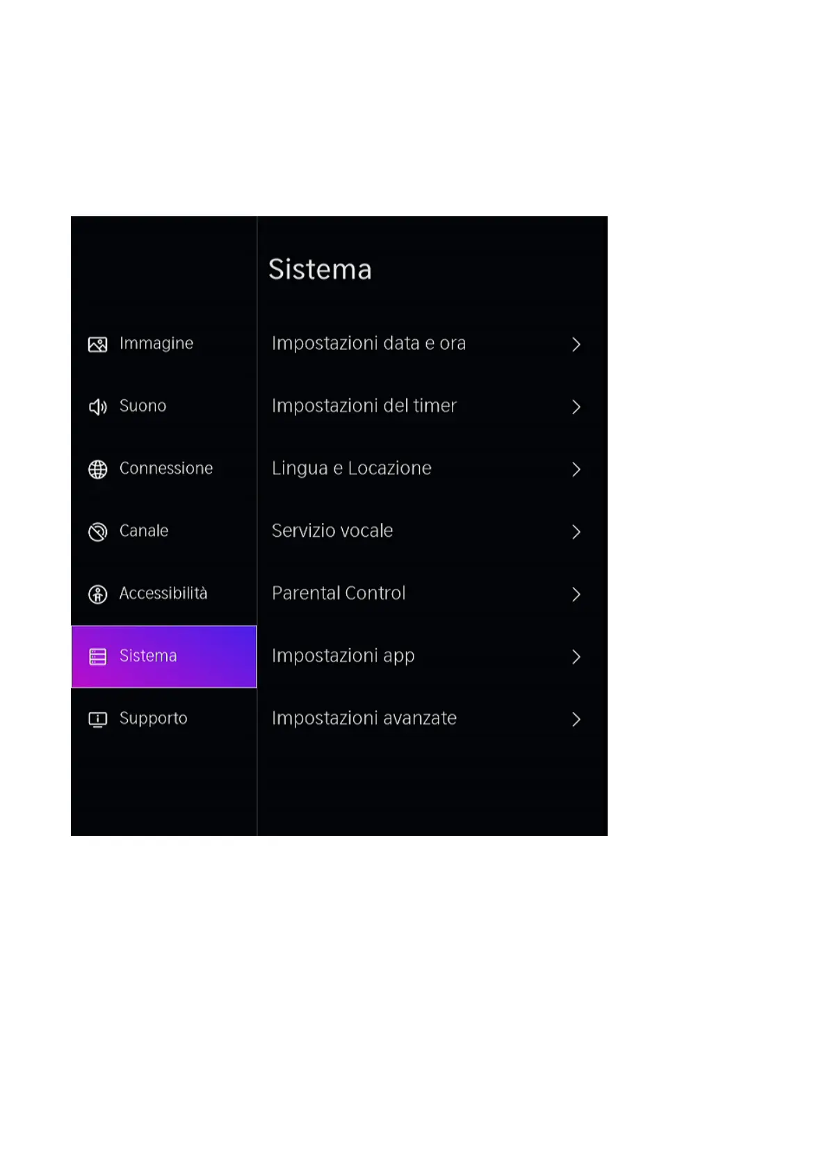 schermata HOME. Quindi seleziona “SISTEMA”.