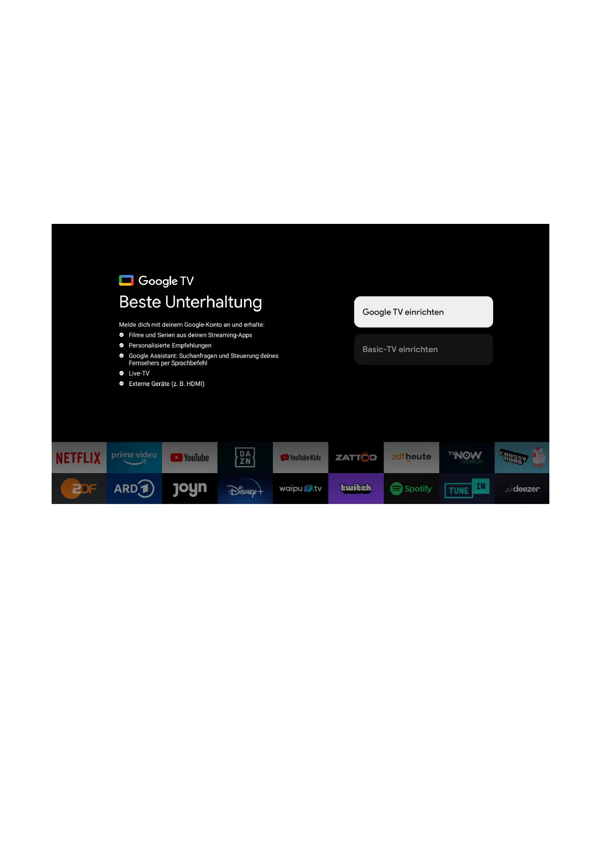 Wenn Sie “GOOGLE TV einrichten” auswählen, folgen Sie bitte den folgenden Anweisungen: