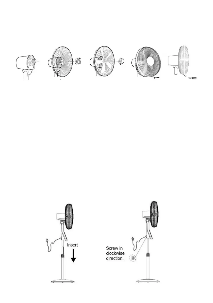 Coloque el aspa del ventilador en el eje del motor colocando las muescas en el aspa en