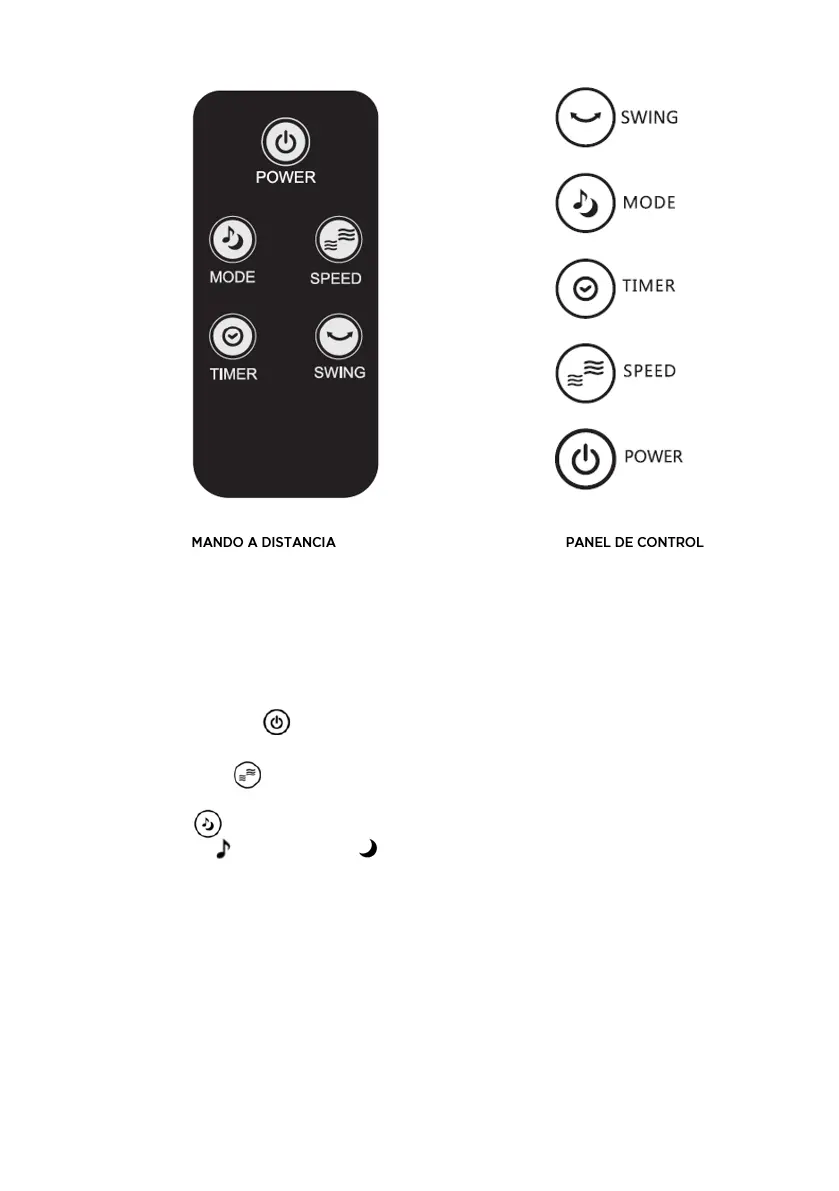 • ALIMENTACIÓN : Encienda el ventilador pulsando la tecla de encendido.