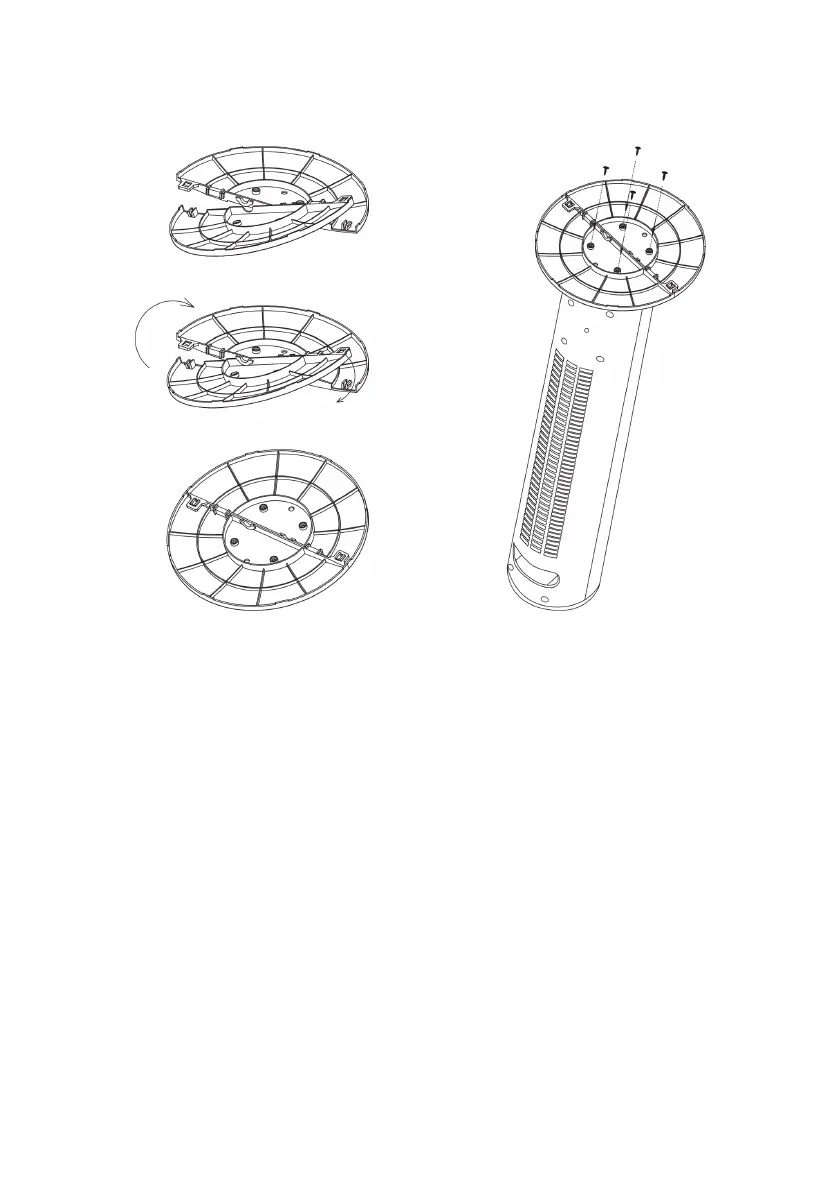 4. Alinhe a base com os orifícios no ventilador da torre e fixe a base com os quatro