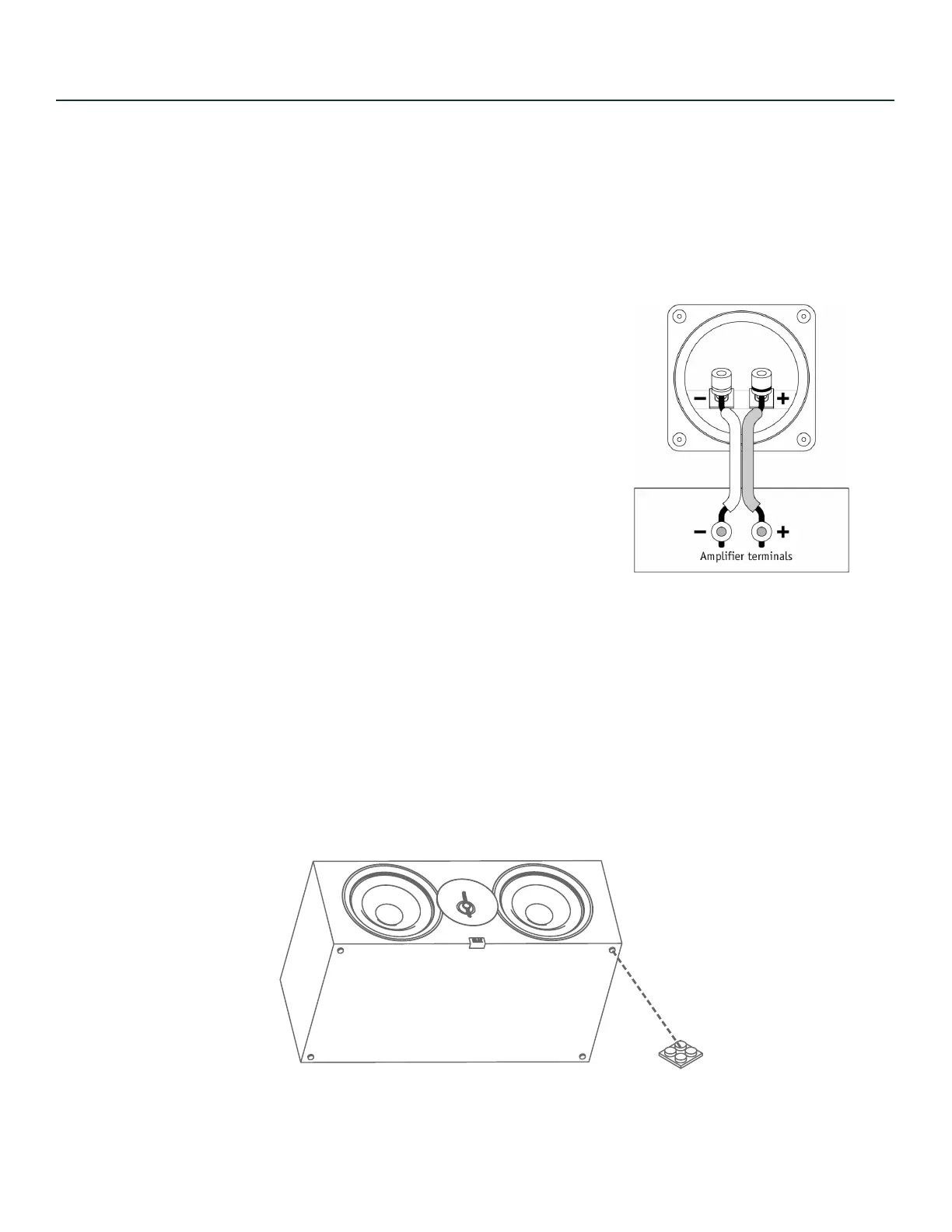 • Make sure wire polarity is connected correctly. Most speaker cables are coded for ease of use. Make