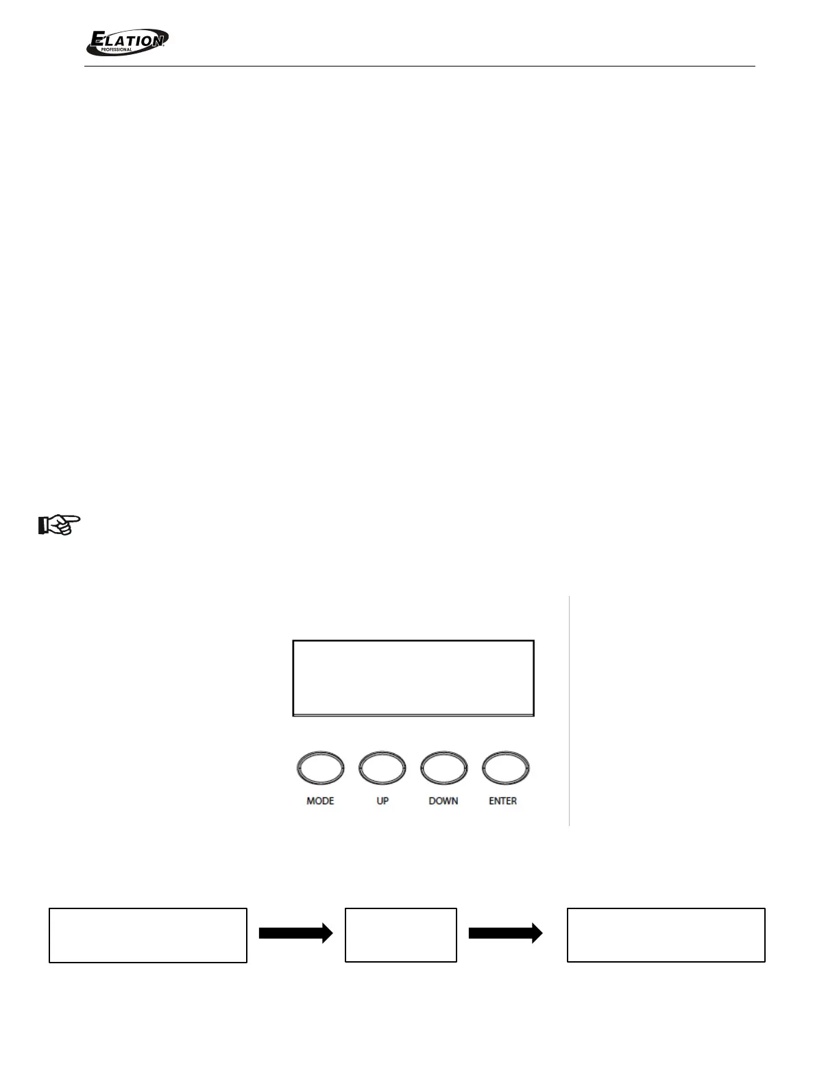normal operation, pressing MODE button once will access the fixture’s main menu.