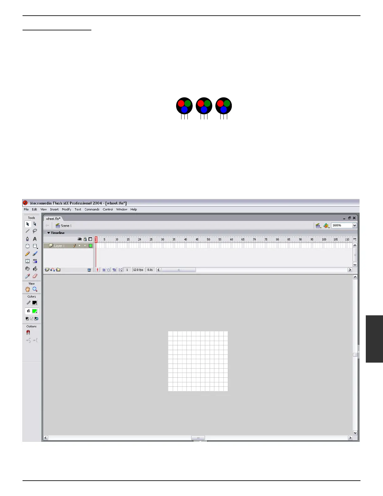accomplish this, the “stage” area in Flash must be set to 13x13 pixels (Figure 13).