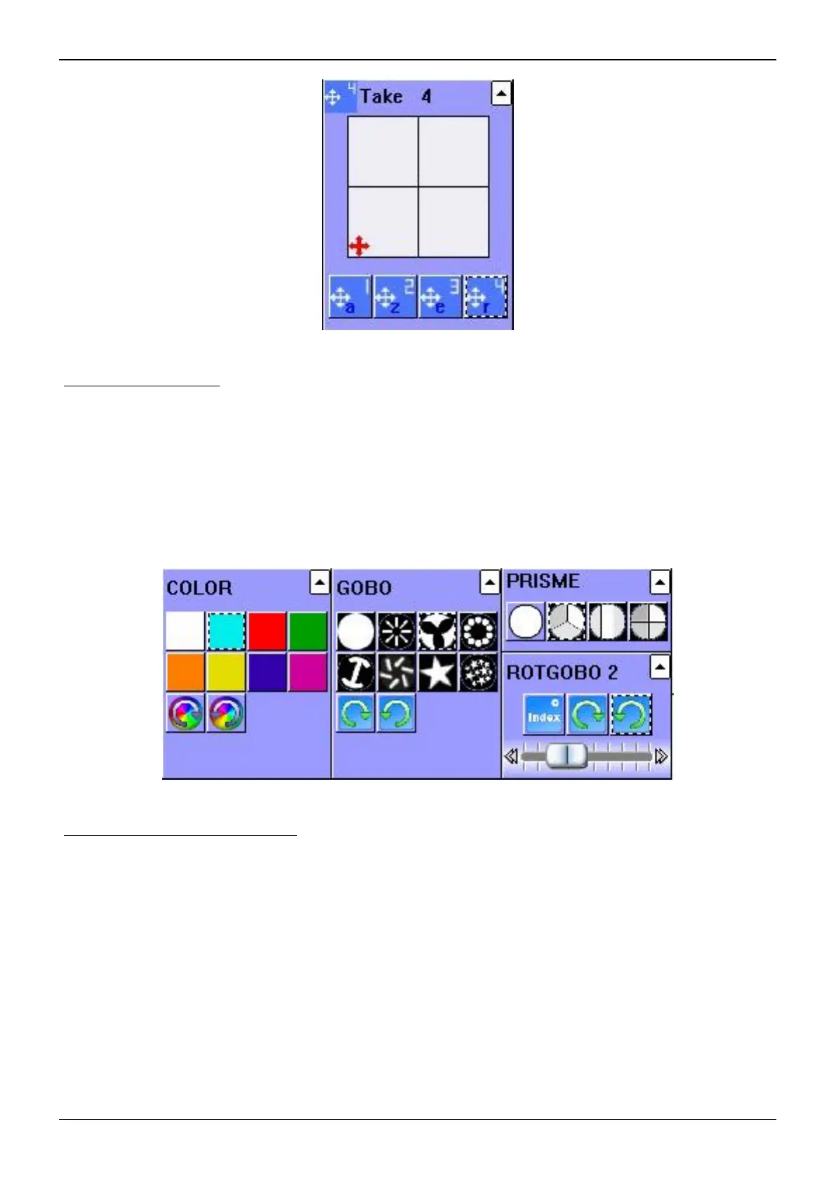 you want: colors, gobos, prism, etc. Feel free to use as many of the preprogrammed buttons available.