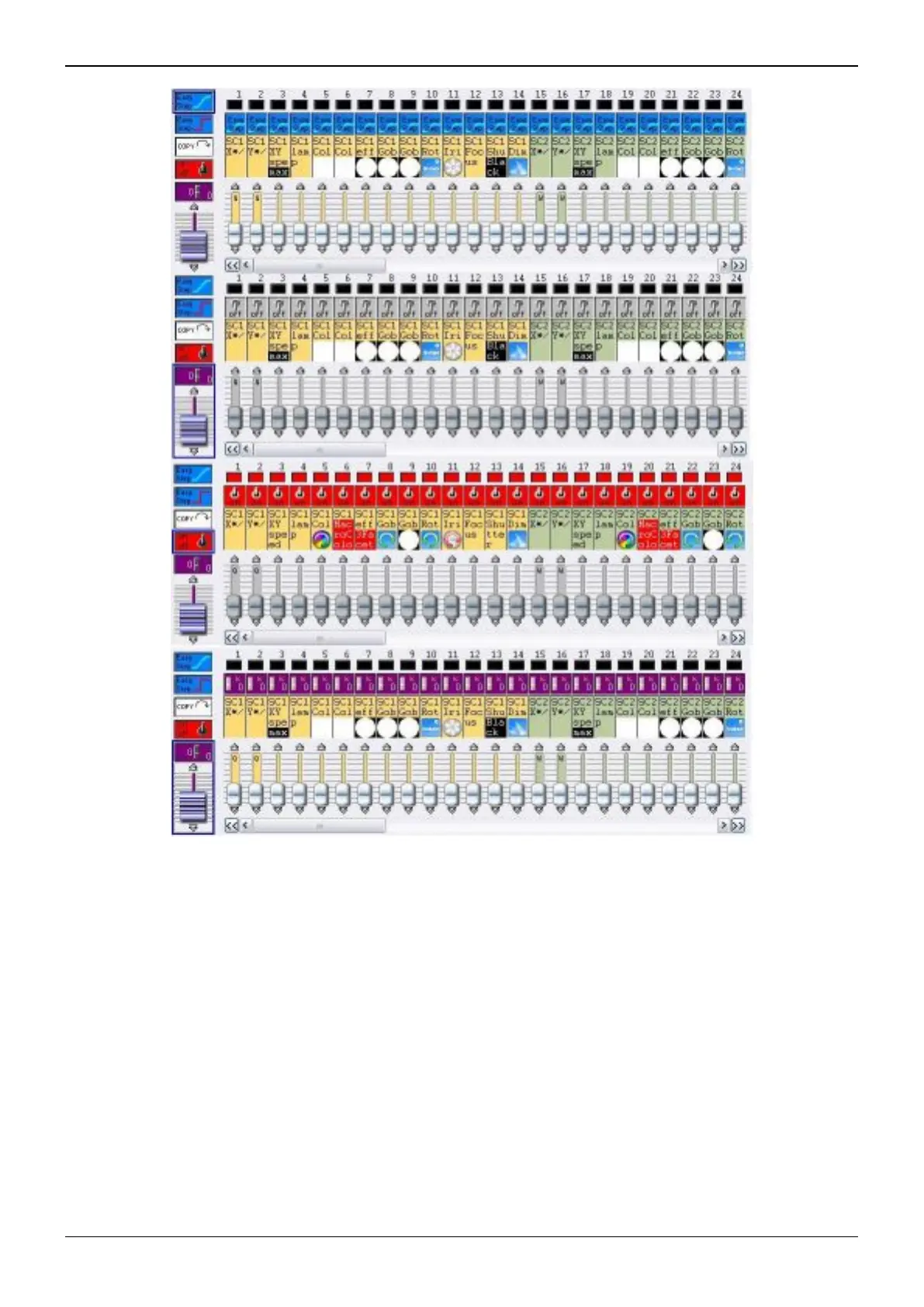 throughout the scene, you can assign these color and gobo channels the DIMMER property and set the