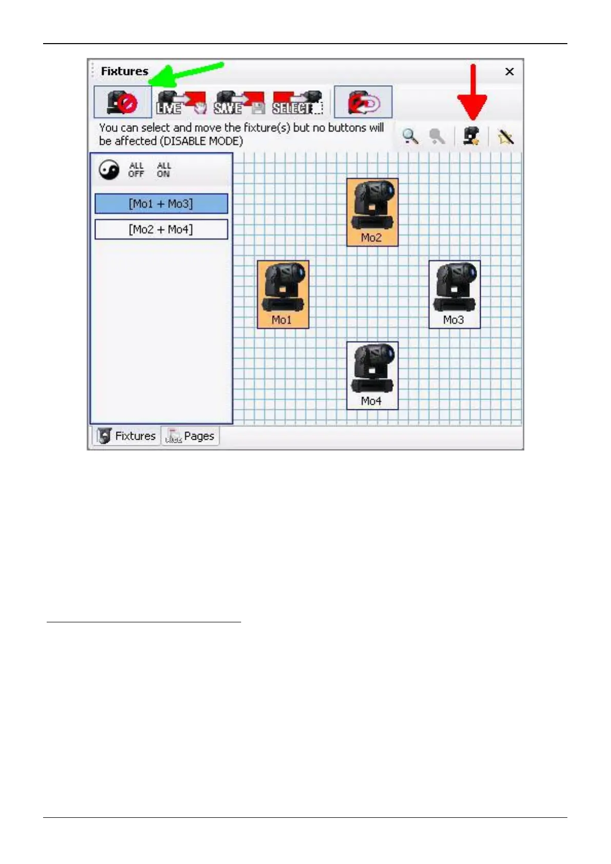 The "Fixtures Group" tools allow you to control fixtures individually or using the groups you just
