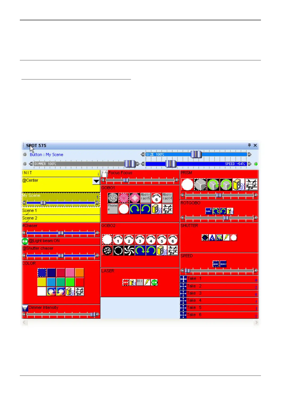 them. These faders control one of three different properties in each button: SPEED, DIMMER and