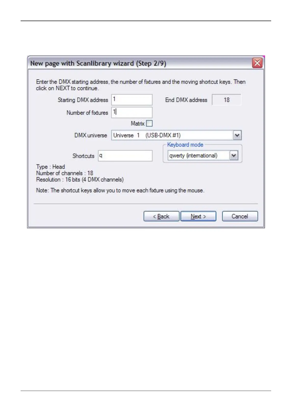 DMX address and number of fixtures (if you do not know the meaning of “starting DMX address”,