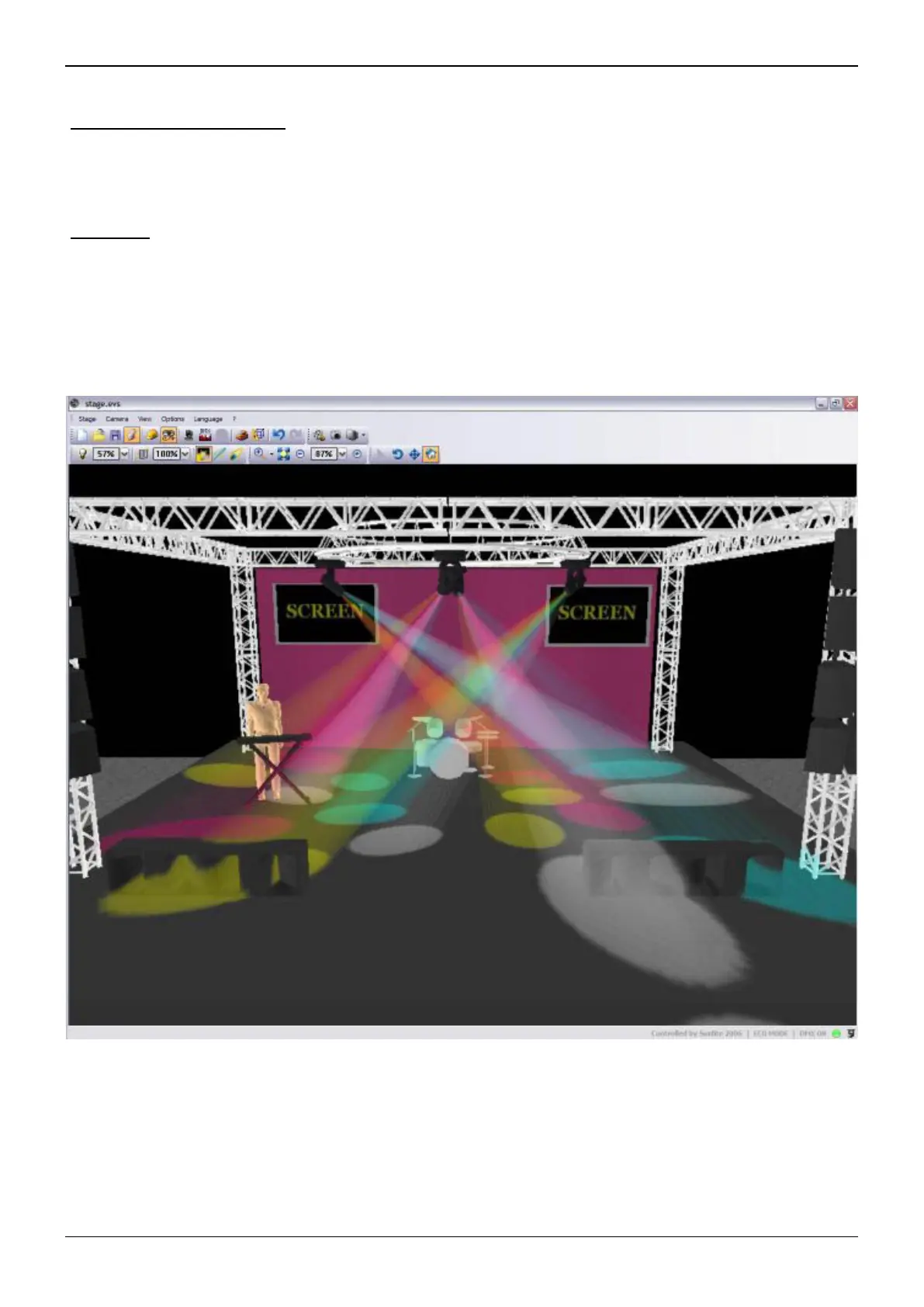 pre-program without lighting fixtures. Create your own stages adding objects and textures, making them