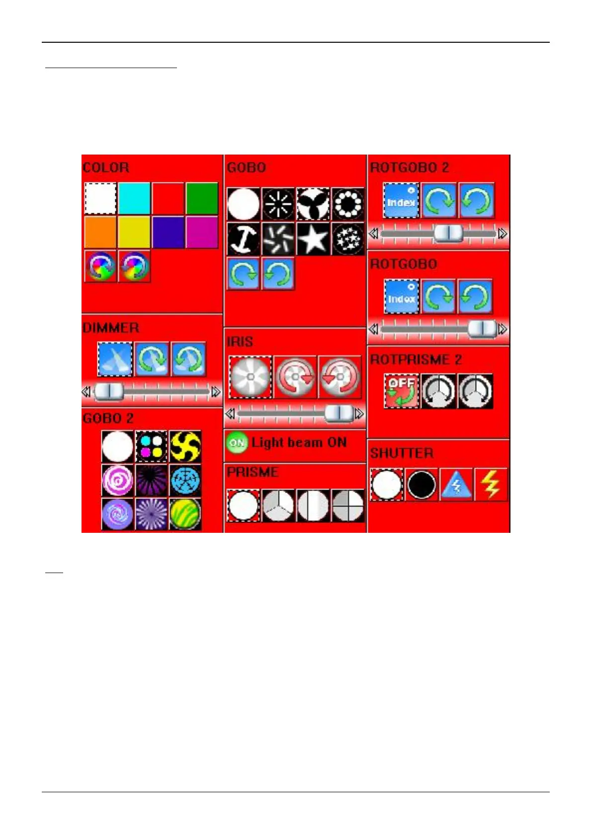 moving head. There will be one X-Y button for each fixture in the page, so that each can be controlled