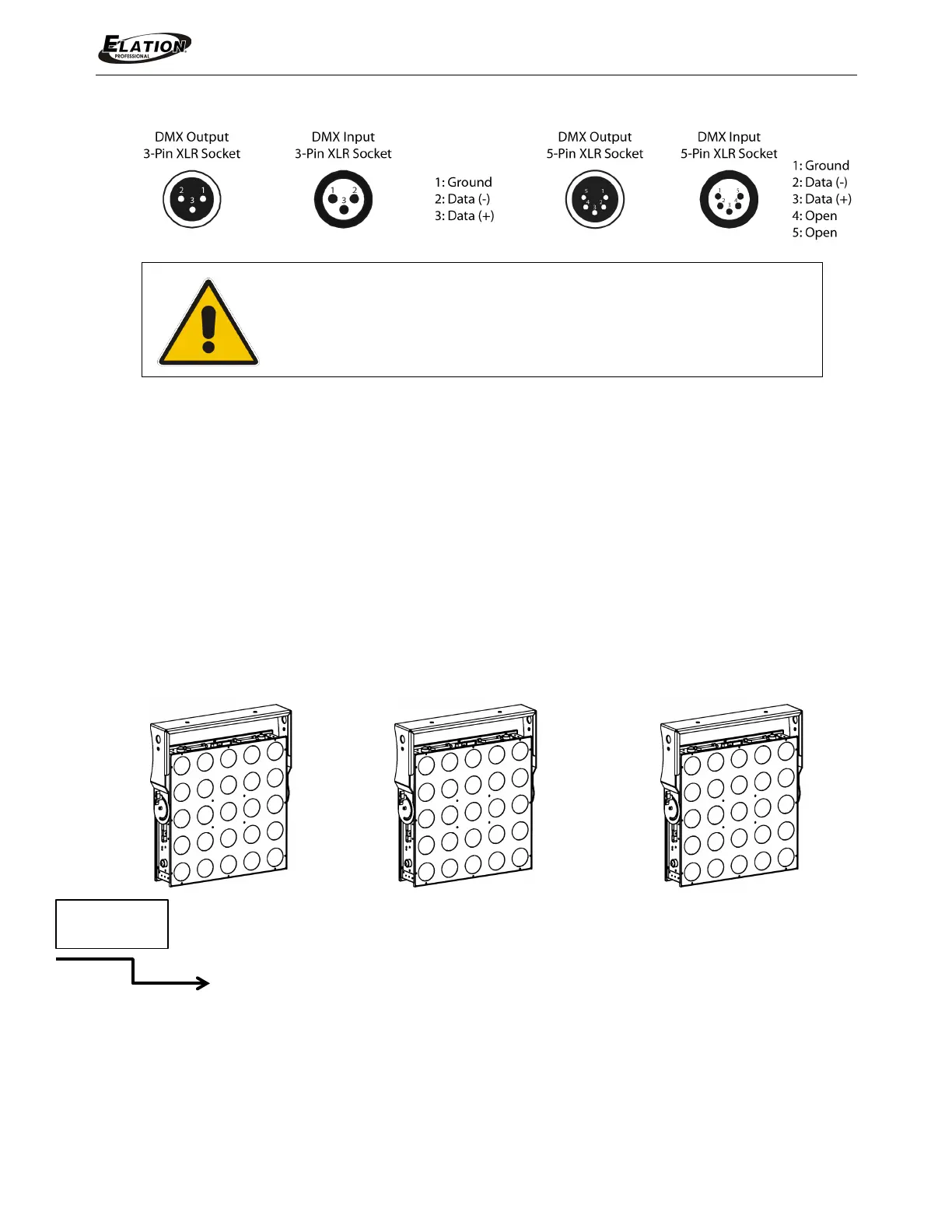 connections unless you are using an approved DMX splitter such as Elation’s Opto