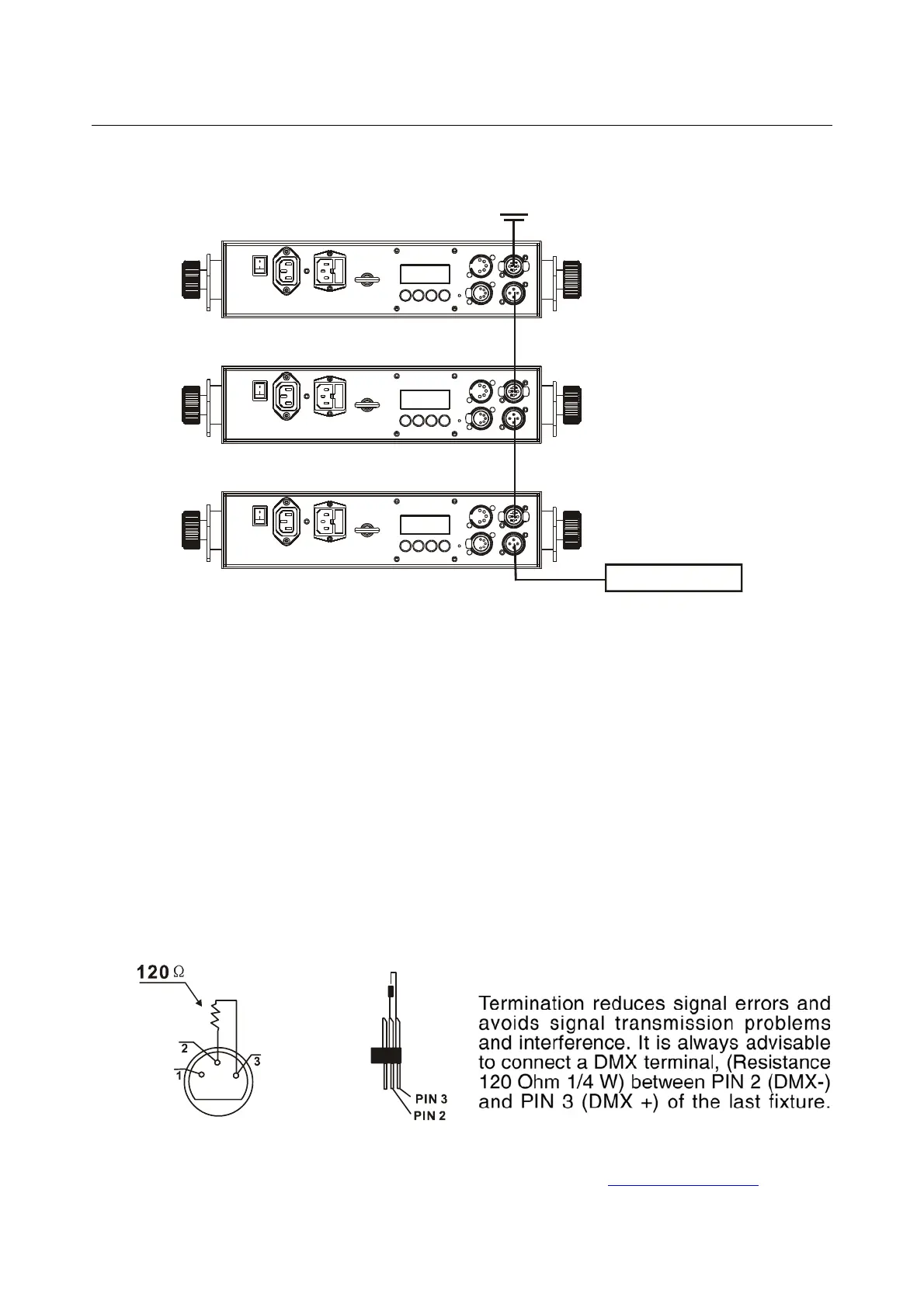 female XLR connector of the last fixture in your daisy chain to terminate the line. Using a