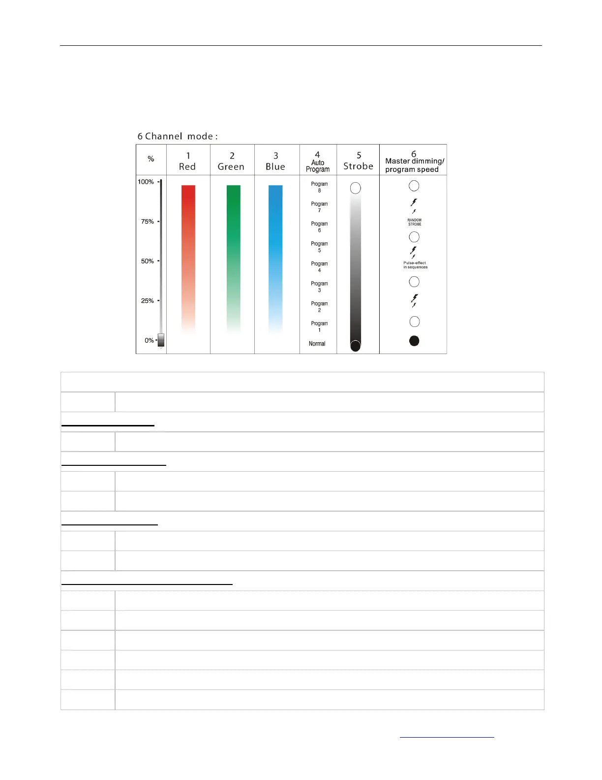 6-Channel mode: In this mode channels 1~3 are used to control the RGB LEDs and