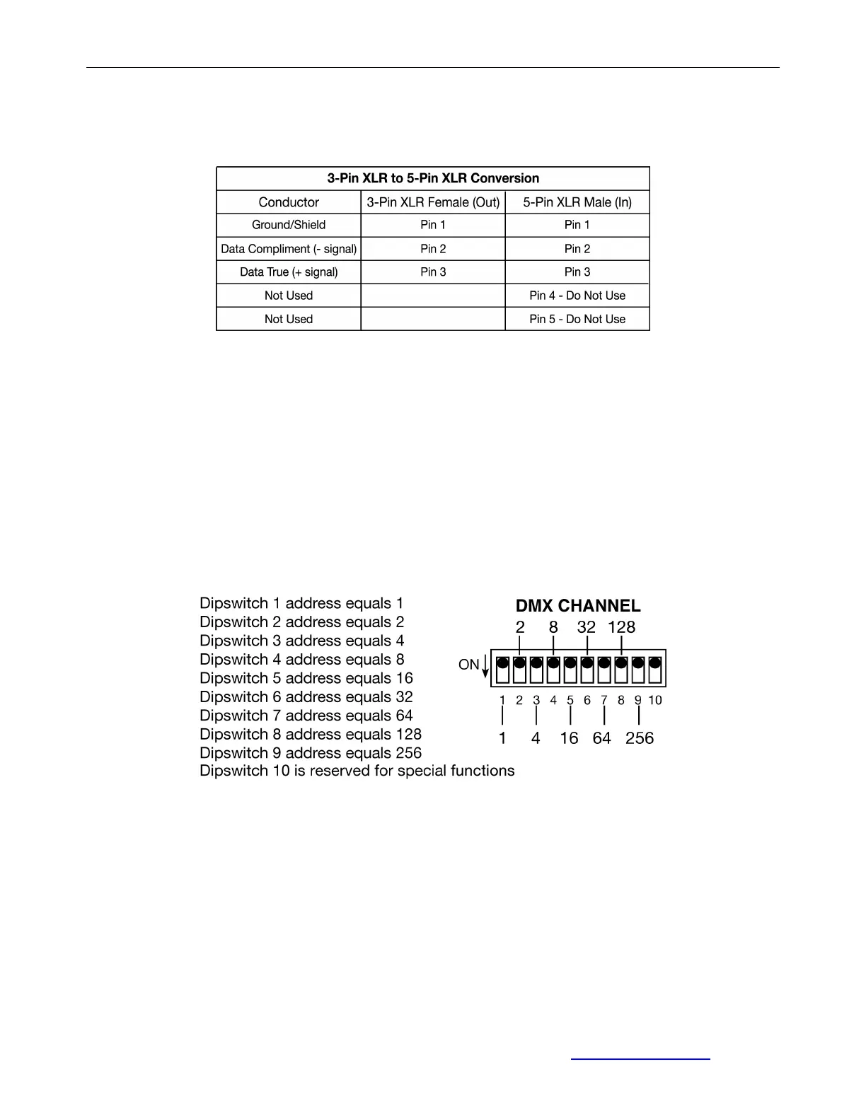 channel number from which the fixture starts to “listen” to the digital control information sent