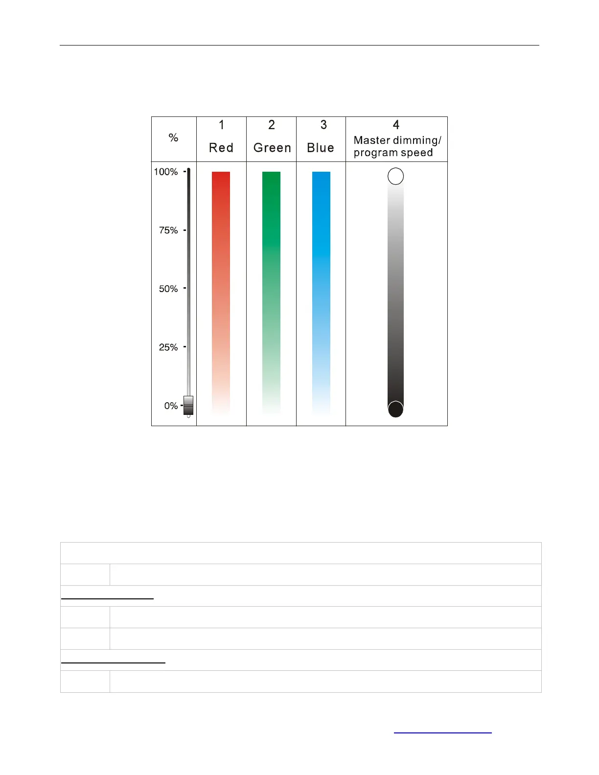 4 Channel Mode: This chart details a simple layout of the DMX channel assignment in