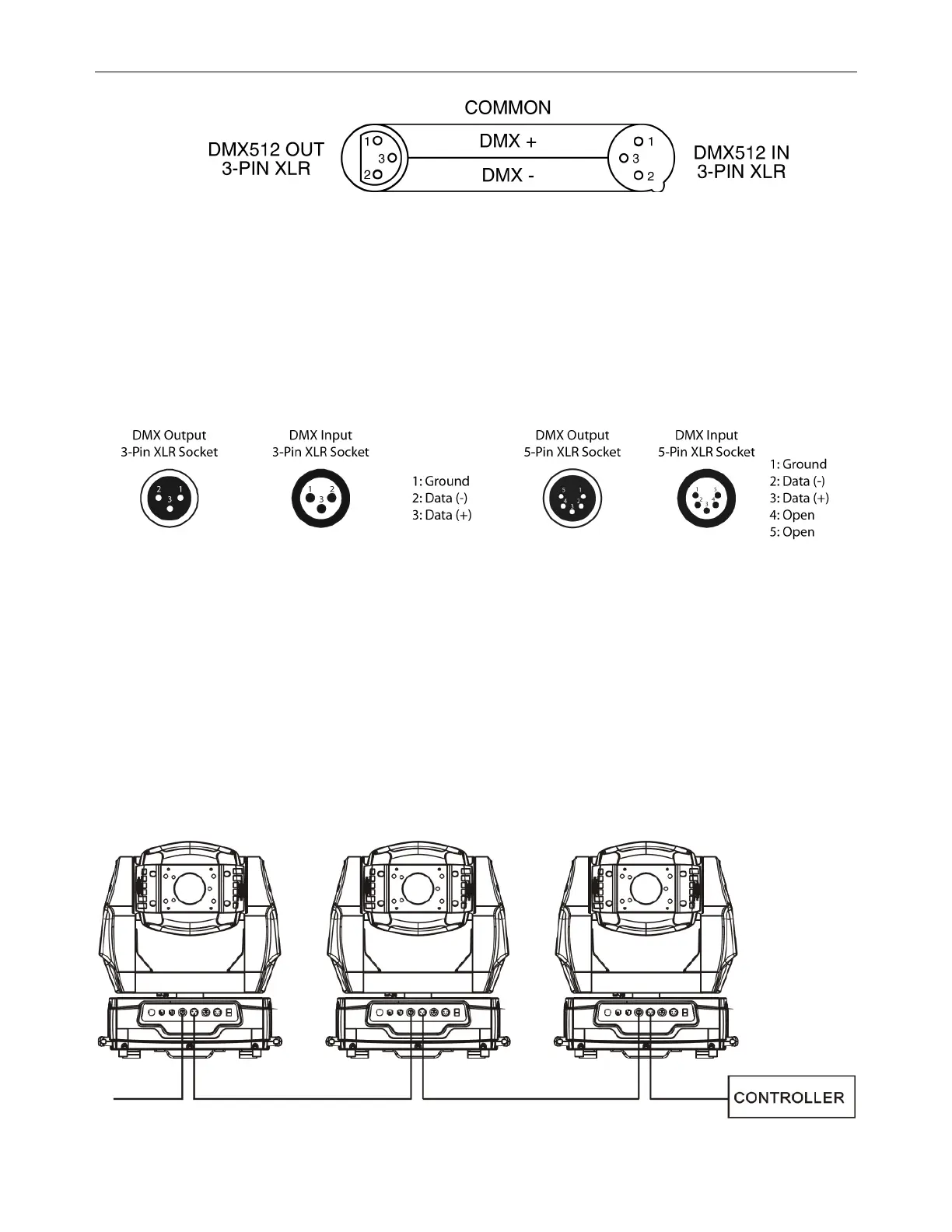 other side to the male 3-pin XLR input of the moving head (Please refer to the diagram
