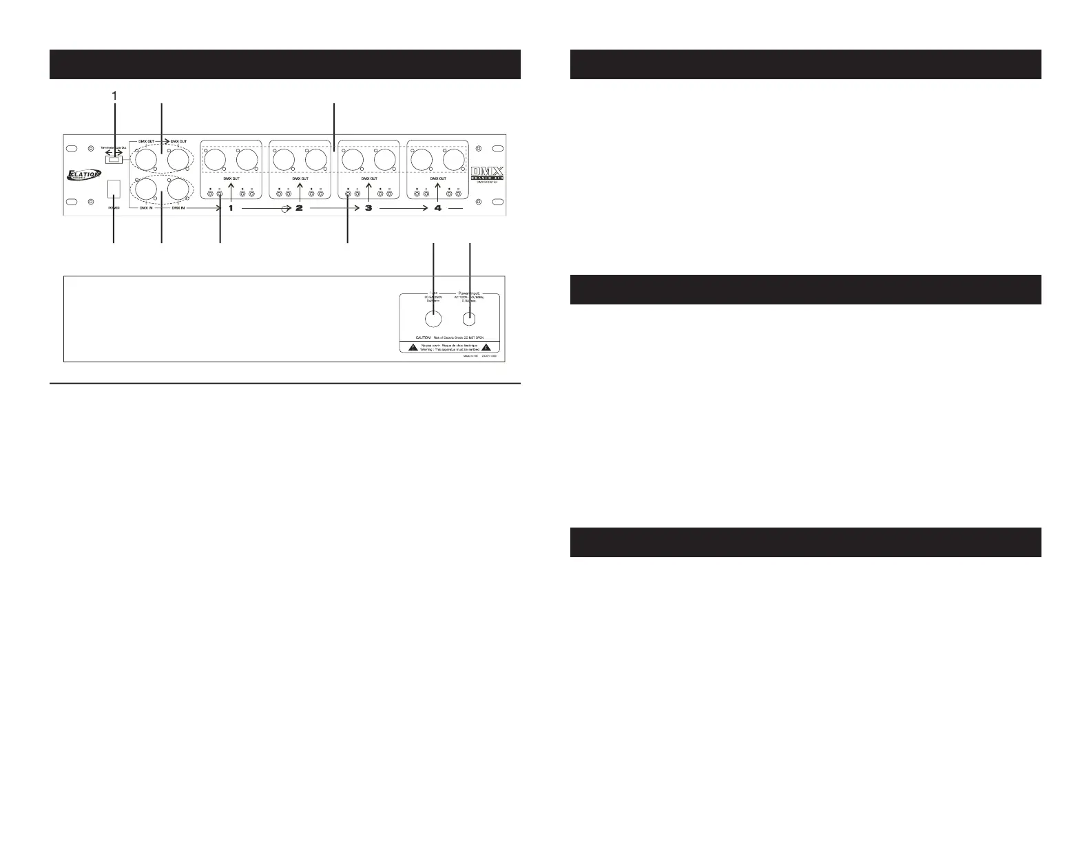 and off. When power is off the Parallel DMX Output Jacks (2) may be