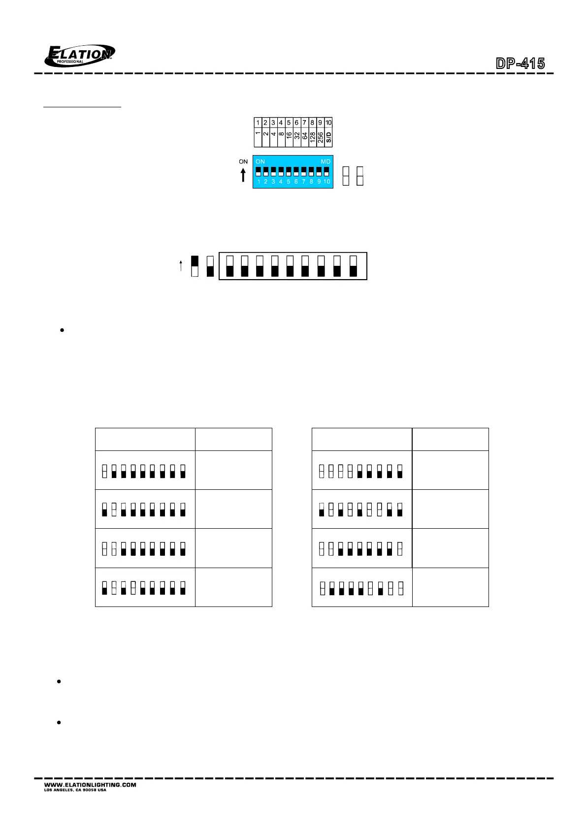 For Example: These would be the dip switch settings for the specified DMX addresses.