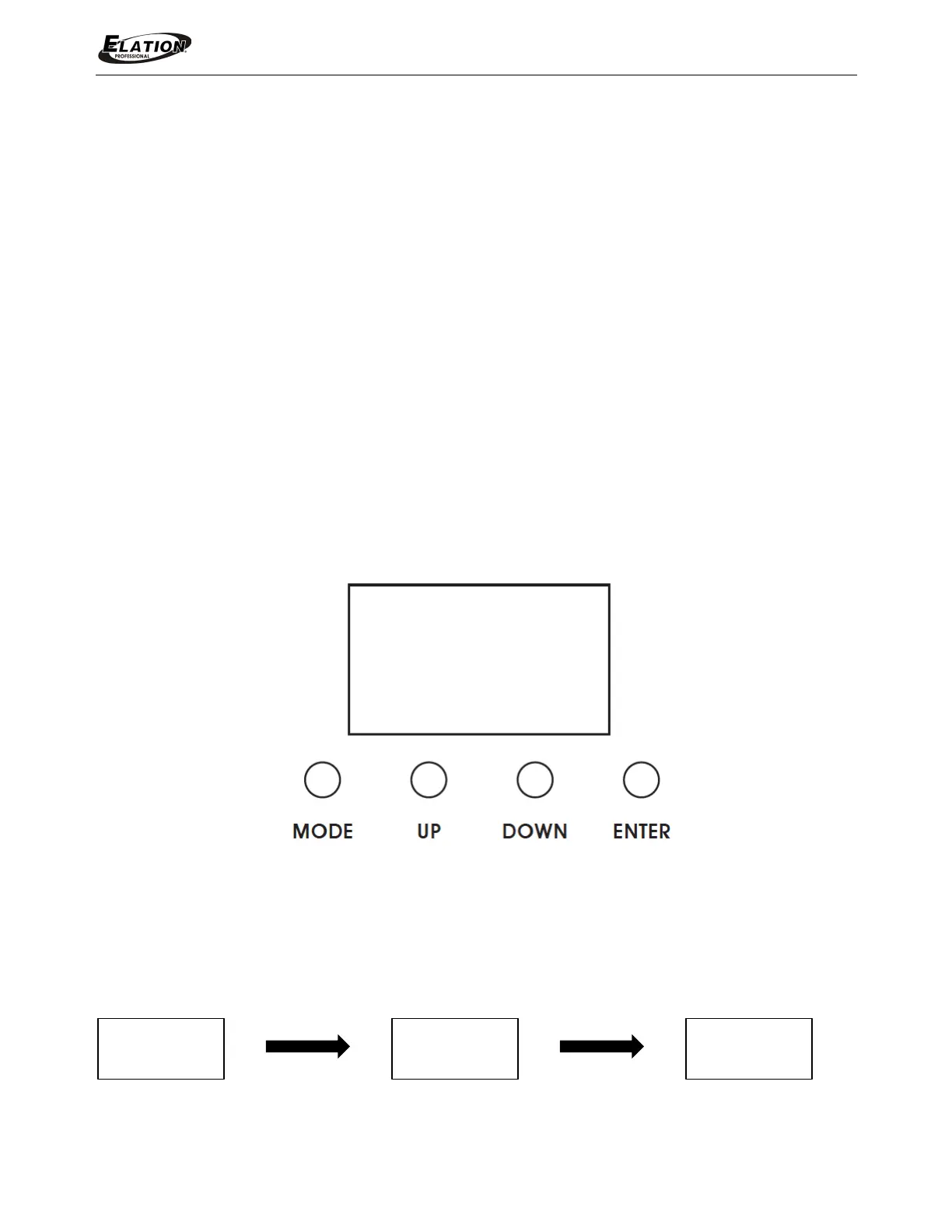 normal operation, pressing MODE button once will access the fixture’s main menu.