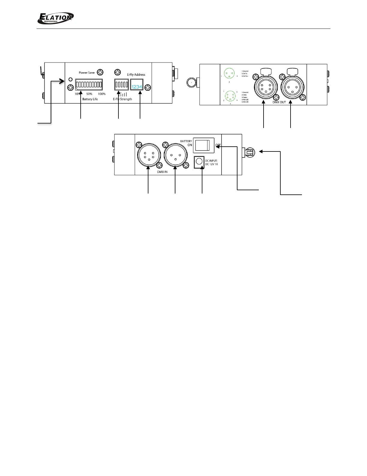3. E-FLY™ Signal Indicator 8. 3pin DMX Input
