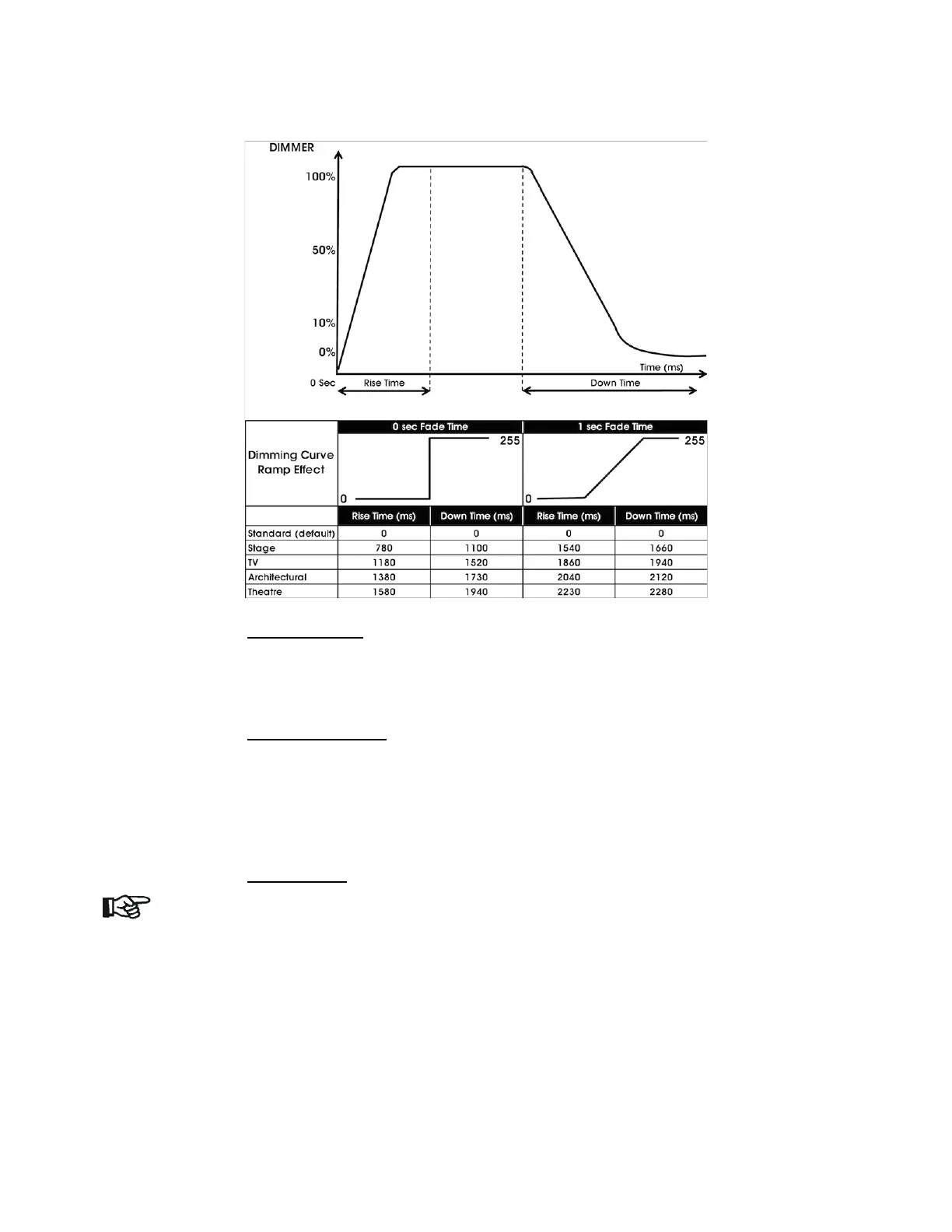 Select desired DIMMER MODE (Standard, Stage, TV, Architectural, Theatre).
