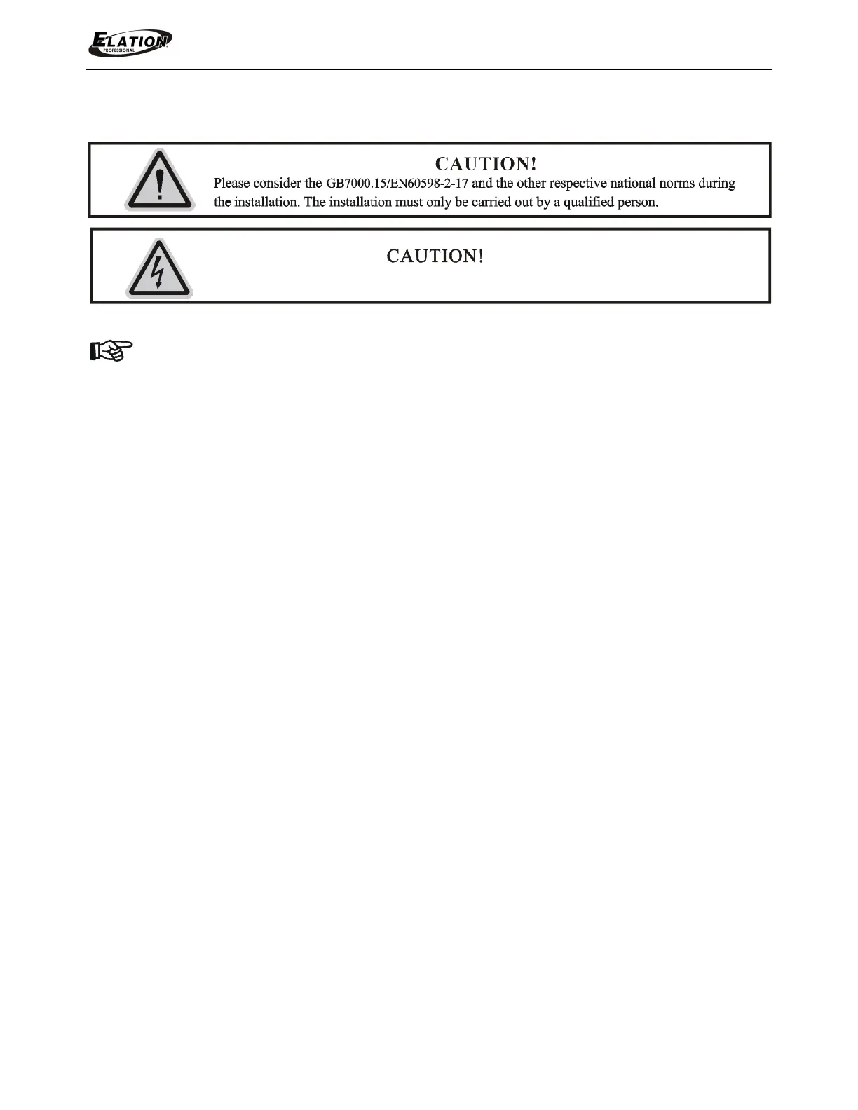 • Fixture installation must always be secured with a secondary safety attachment, such as