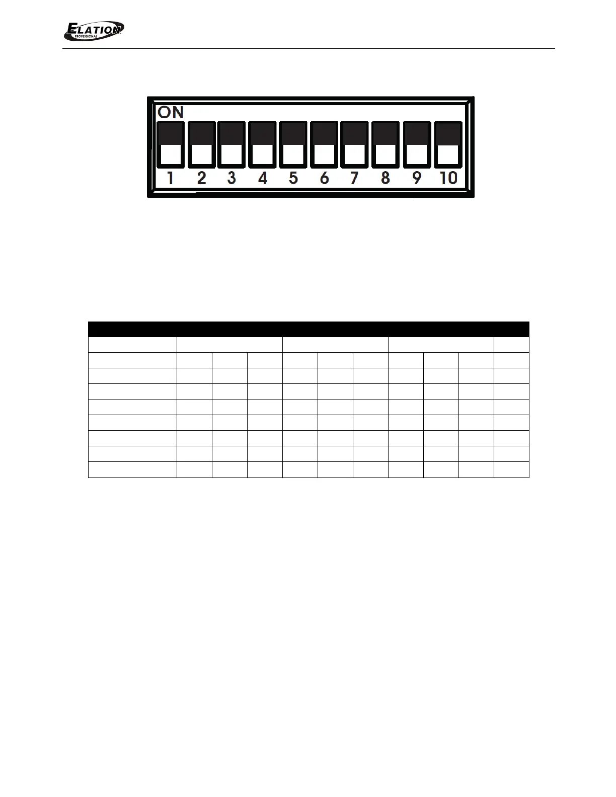 2. Using the chart below, turn ON switches that equal the desired brightness level.