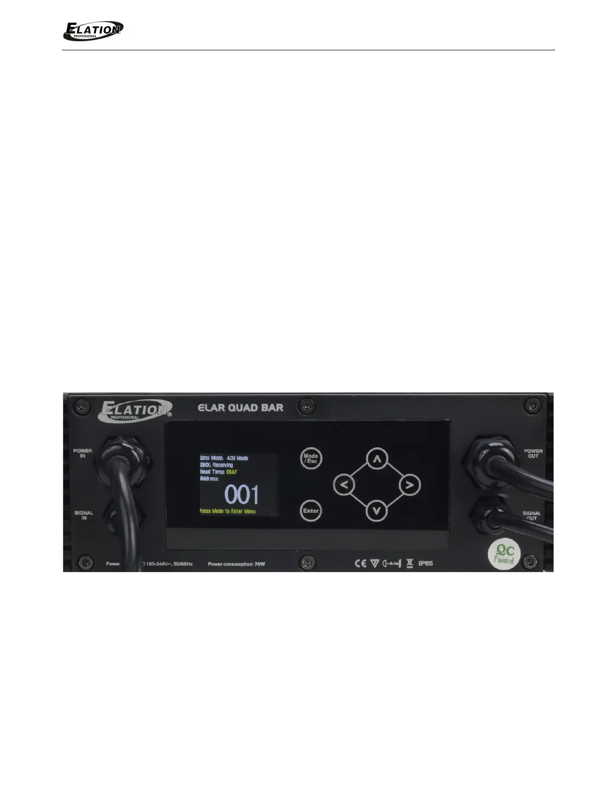 Bekijk gratis de handleiding van Elation ELAR Quad Bar, stel vragen en lees de antwoorden op veelvoorkomende problemen, of gebruik onze assistent om sneller informatie in de handleiding te vinden of uitleg te krijgen over specifieke functies.
