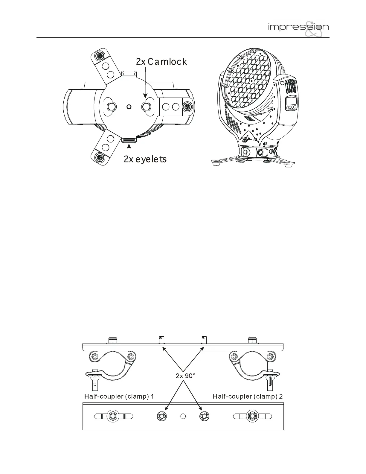 concentric position between two truss bars. Never mount the fixture on its’ side using the