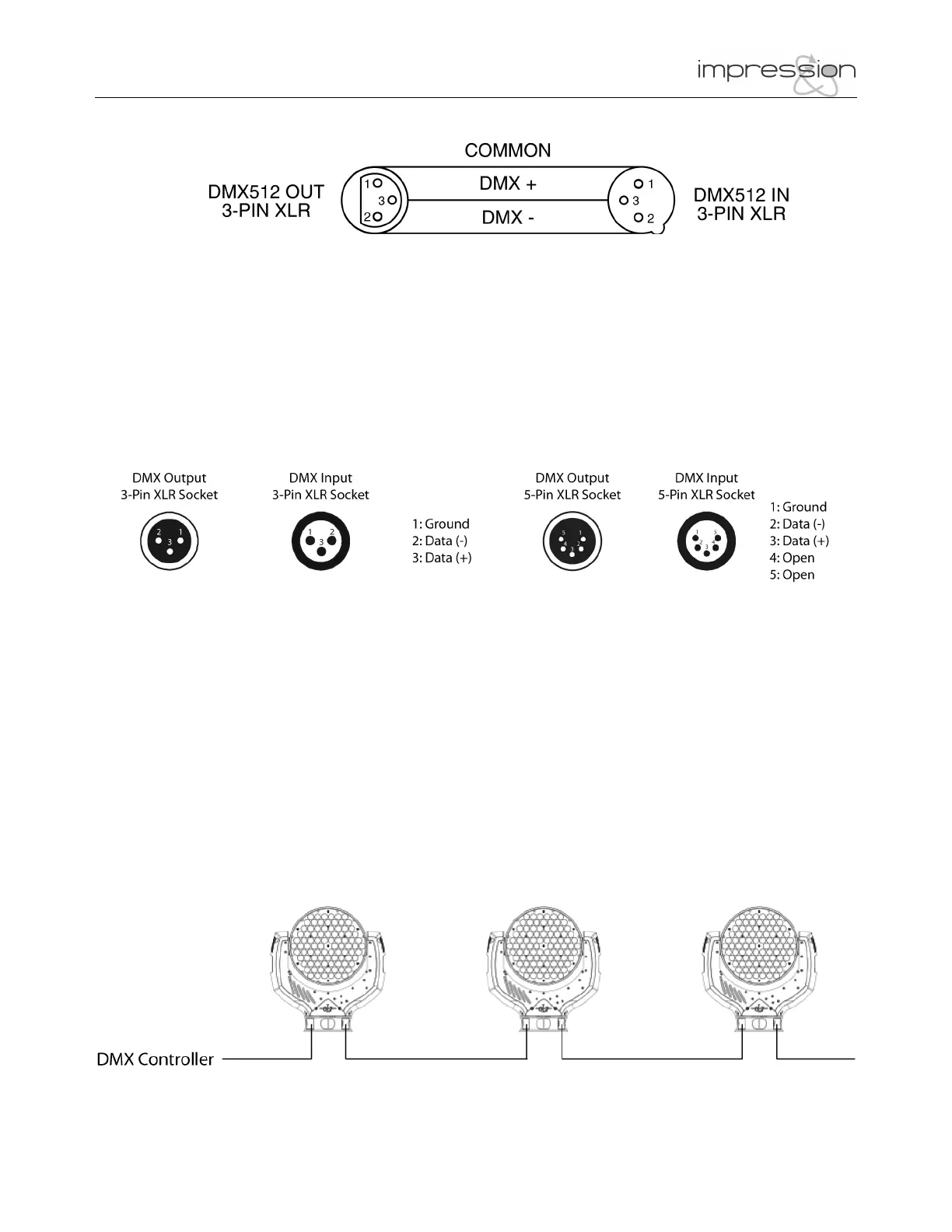 other side to the male 3-pin XLR input of the moving head (Please refer to the diagram