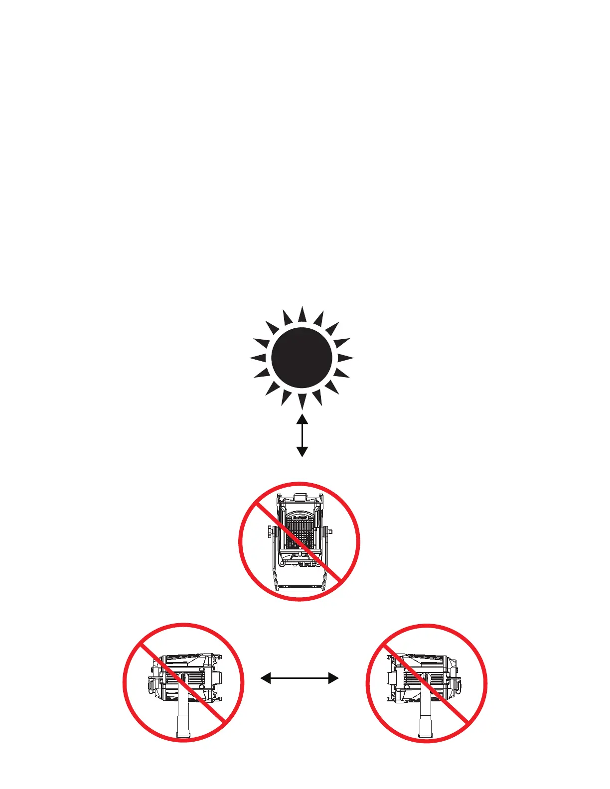 lens opening of Elation lighting fixtures, can cause severe internal damage including burning