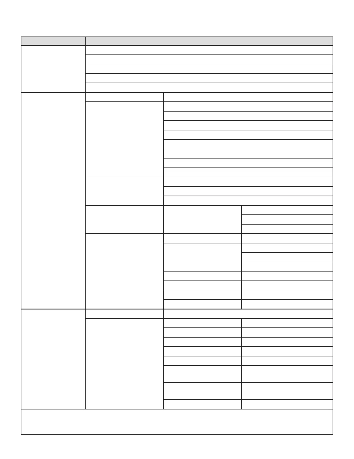 MAIN MENU OPTIONS / VALUES (Default Settings in BOLD)