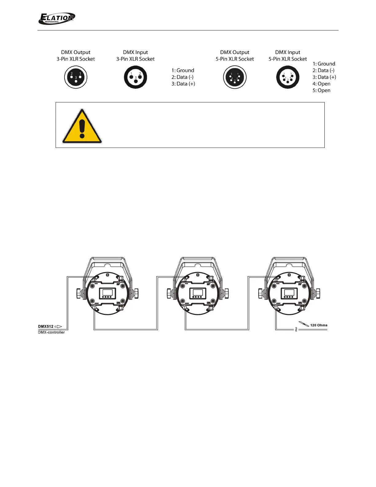 chain to terminate the line. Using a line terminator (Elation part: DMX T PACK) will decrease