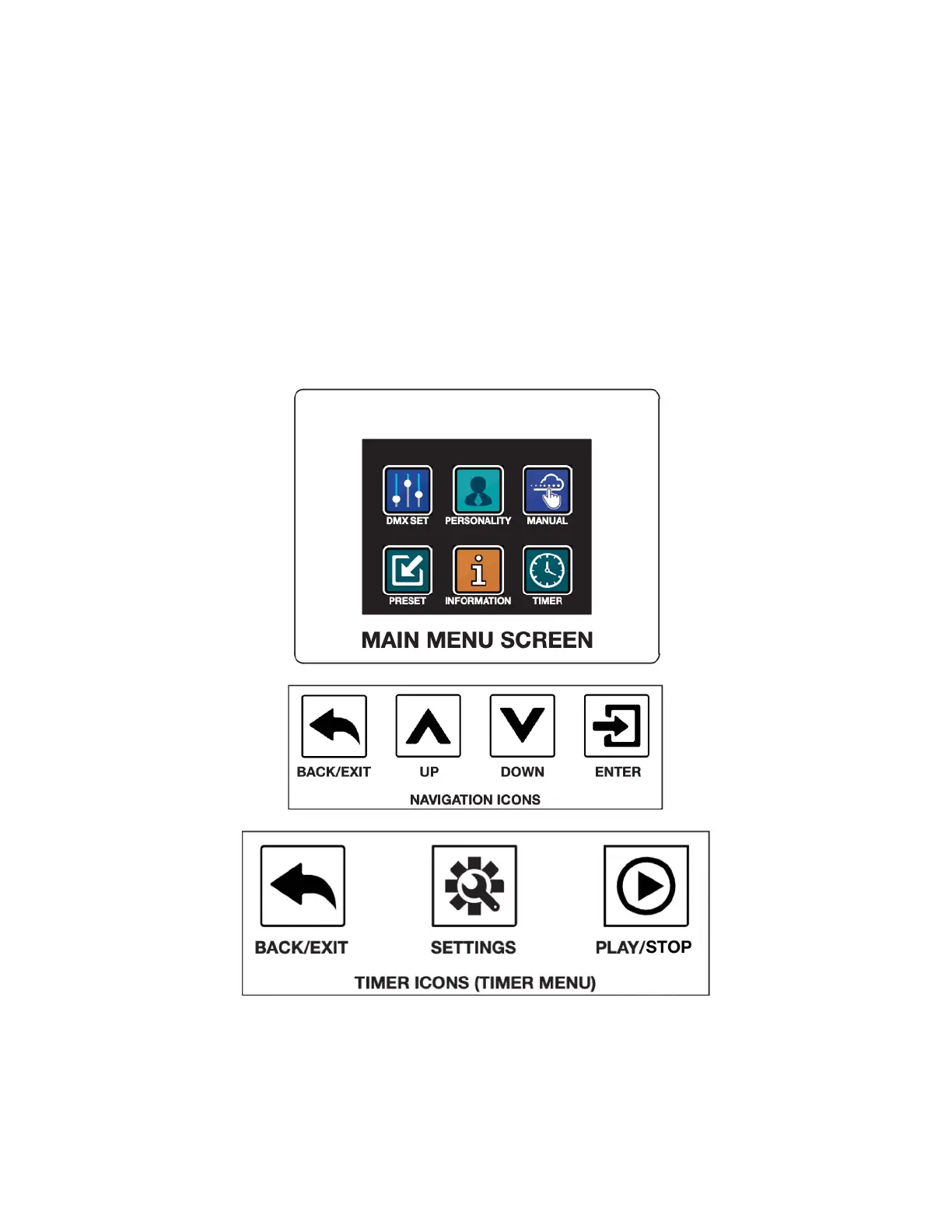 Press the main menu icon you would like to access. Use the ENTER button to access sub menus