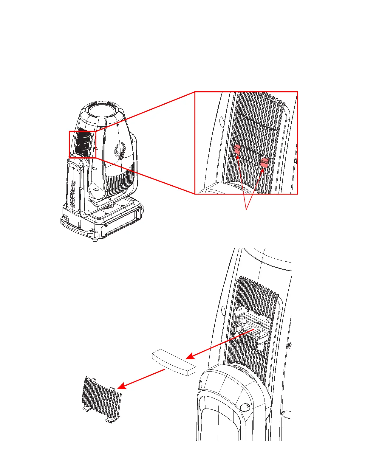 side of the head, just above the attachment point for the xture arm. To replace the lter,
