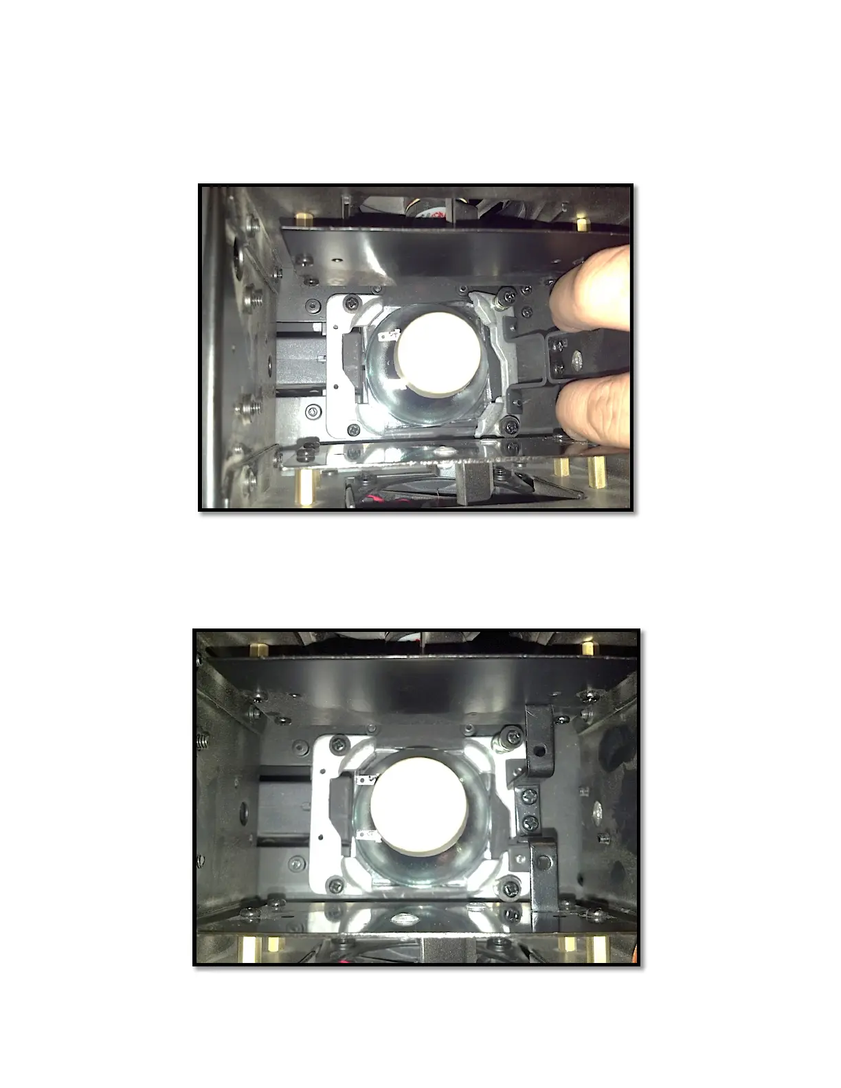 7.! While still holding the retention handle with your RIGHT hand, gently turn the lamp