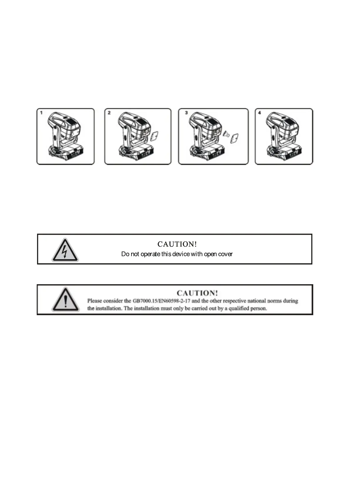 Never stand directly below the device when mounting, removing or servicing the fixture.