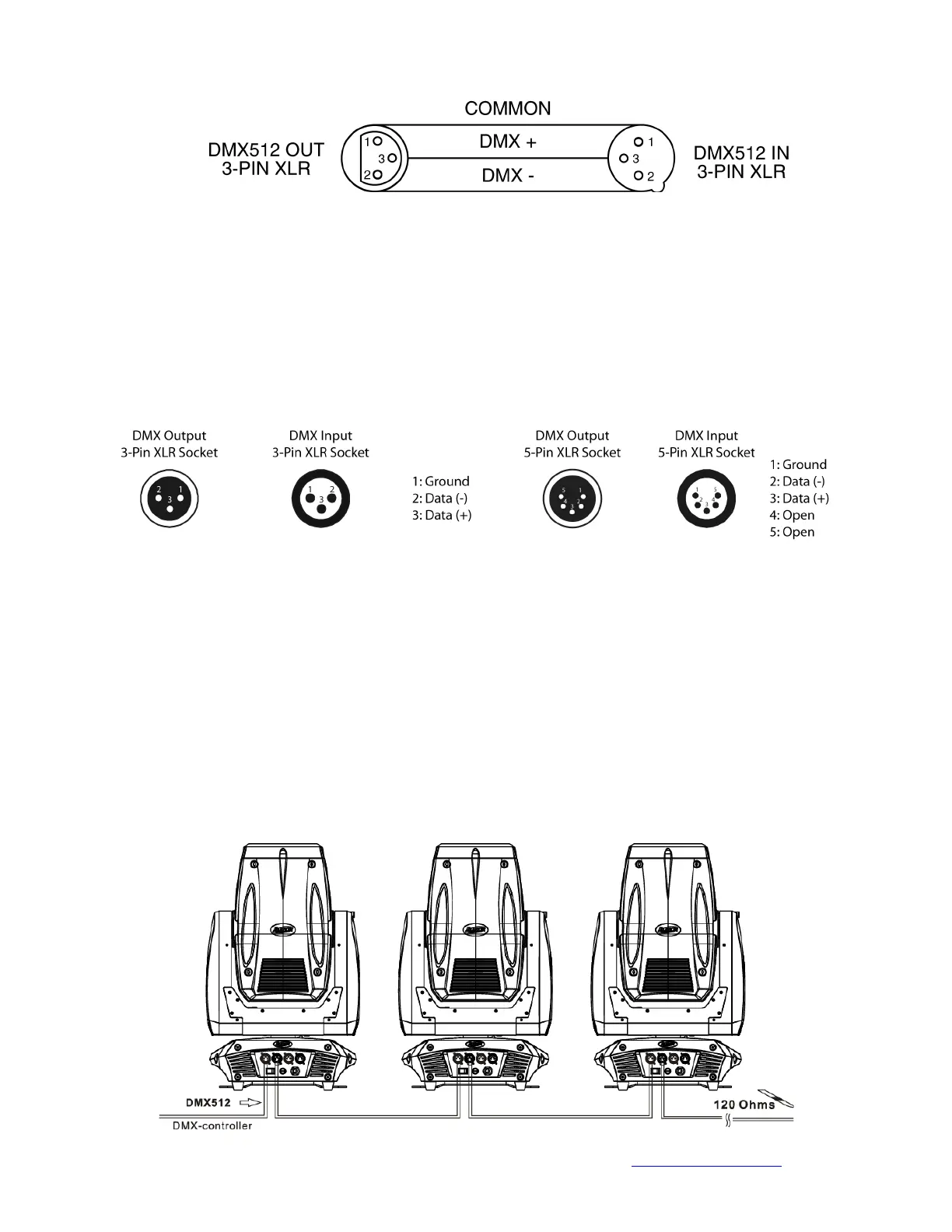 other side to the male 3-pin XLR input of the moving head (Please refer to the diagram