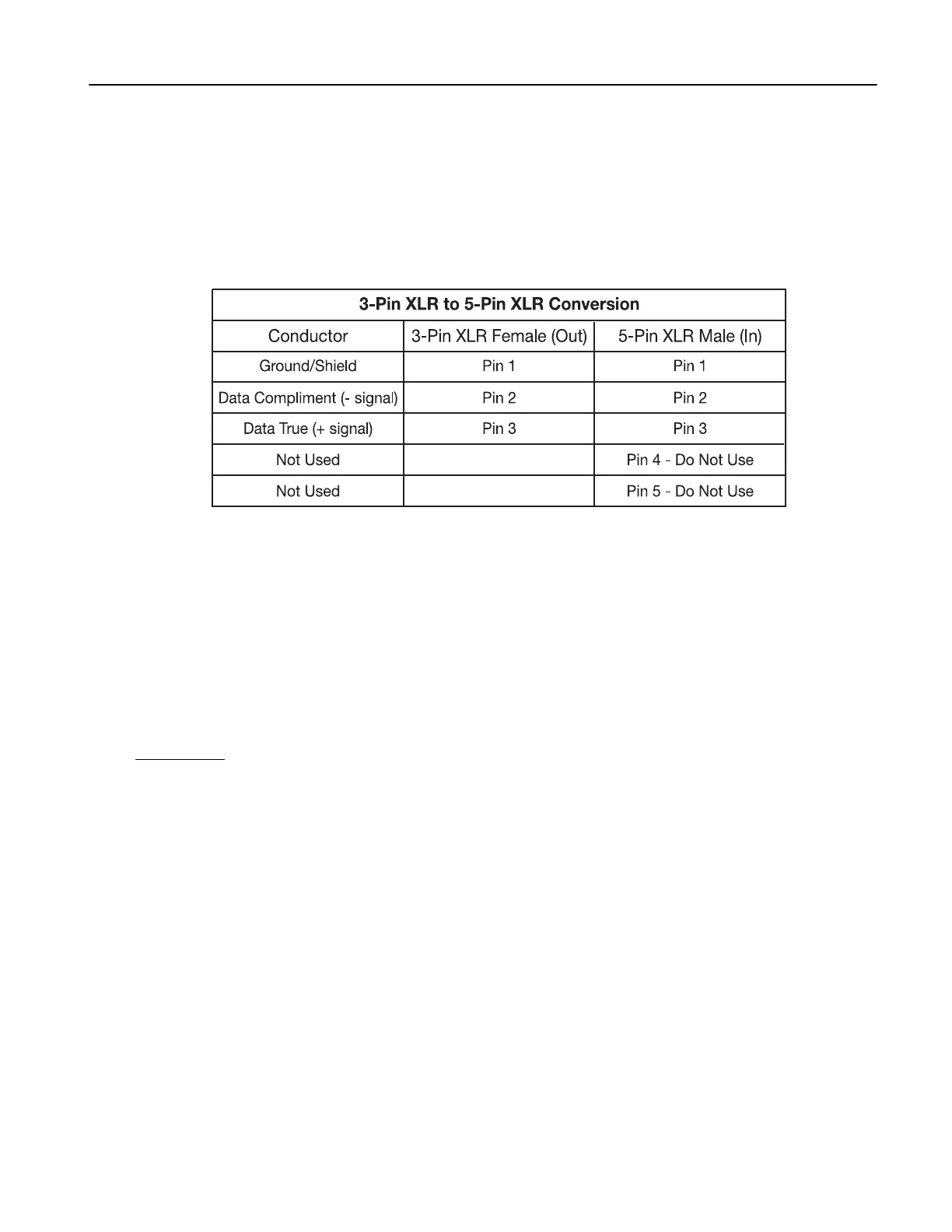 3-pin XLR DMX line. When inserting standard 5-pin XLR connectors in to a 3-pin line