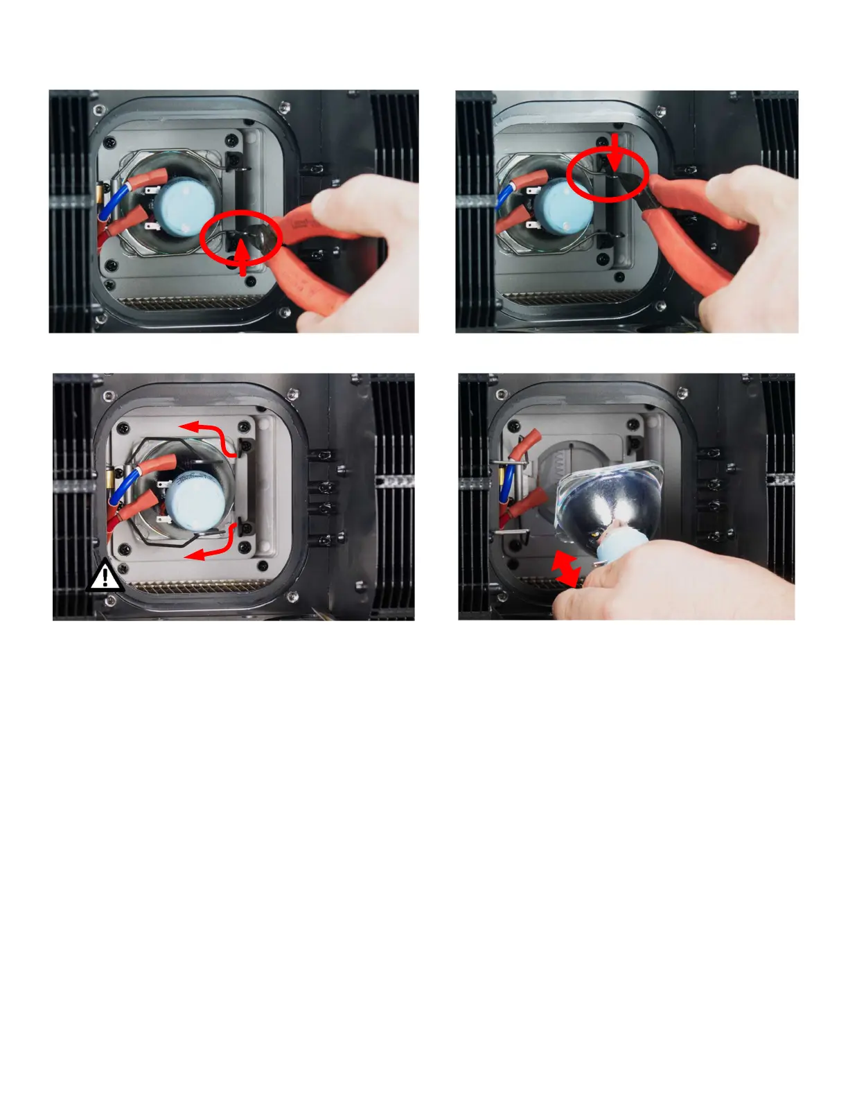 8. Unclip the lamp retaining clip by disconnecting it from the bottom and top hooks.