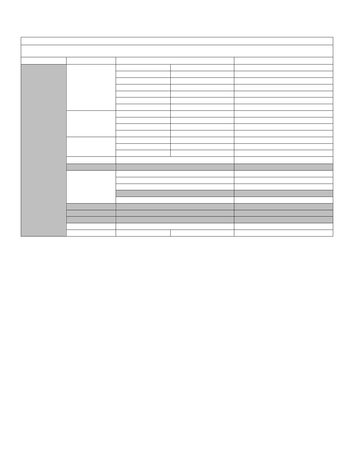 MAIN MENU SUB MENU OPTIONS / VALUES (Default Settings in BOLD) DESCRIPTION