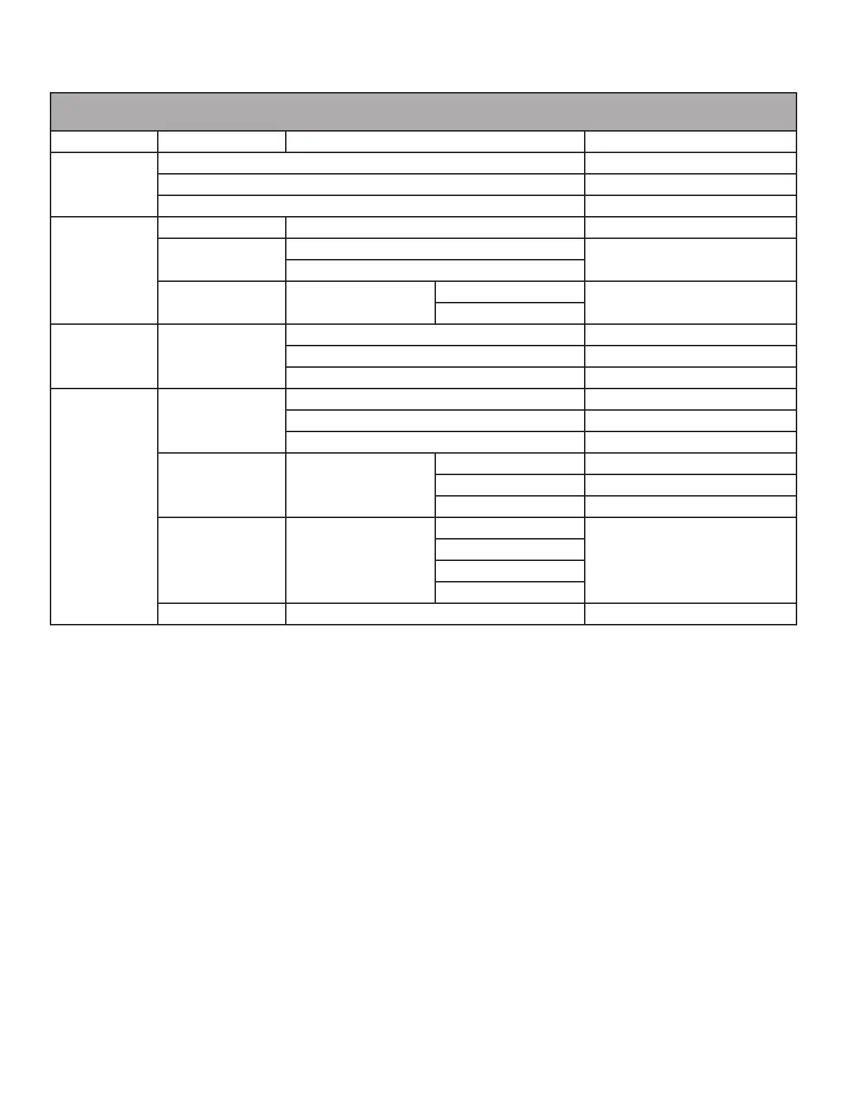 MAIN MENU SUB MENU OPTIONS / VALUES DESCRIPTION