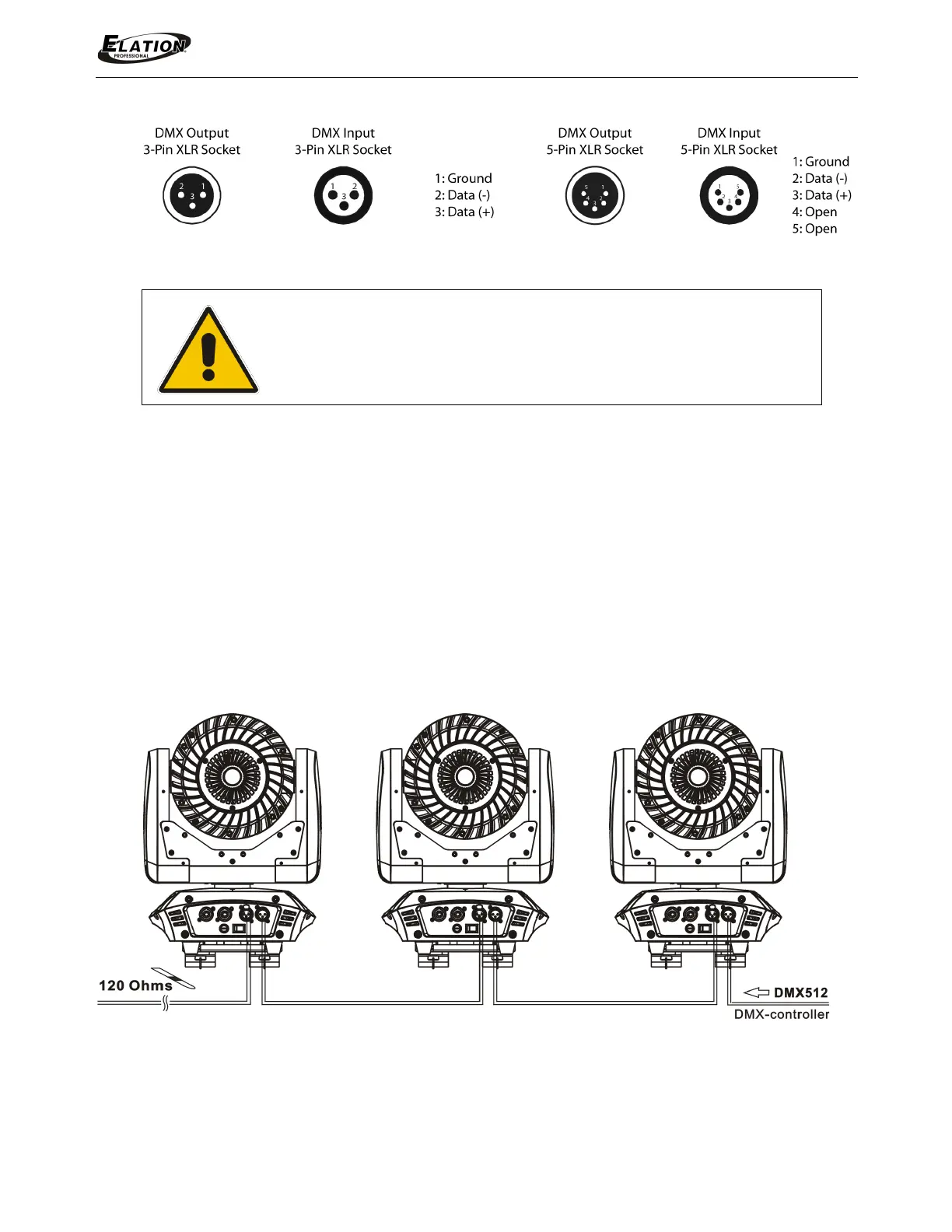 connections unless you are using an approved DMX splitter such as the Elation Opto Branch